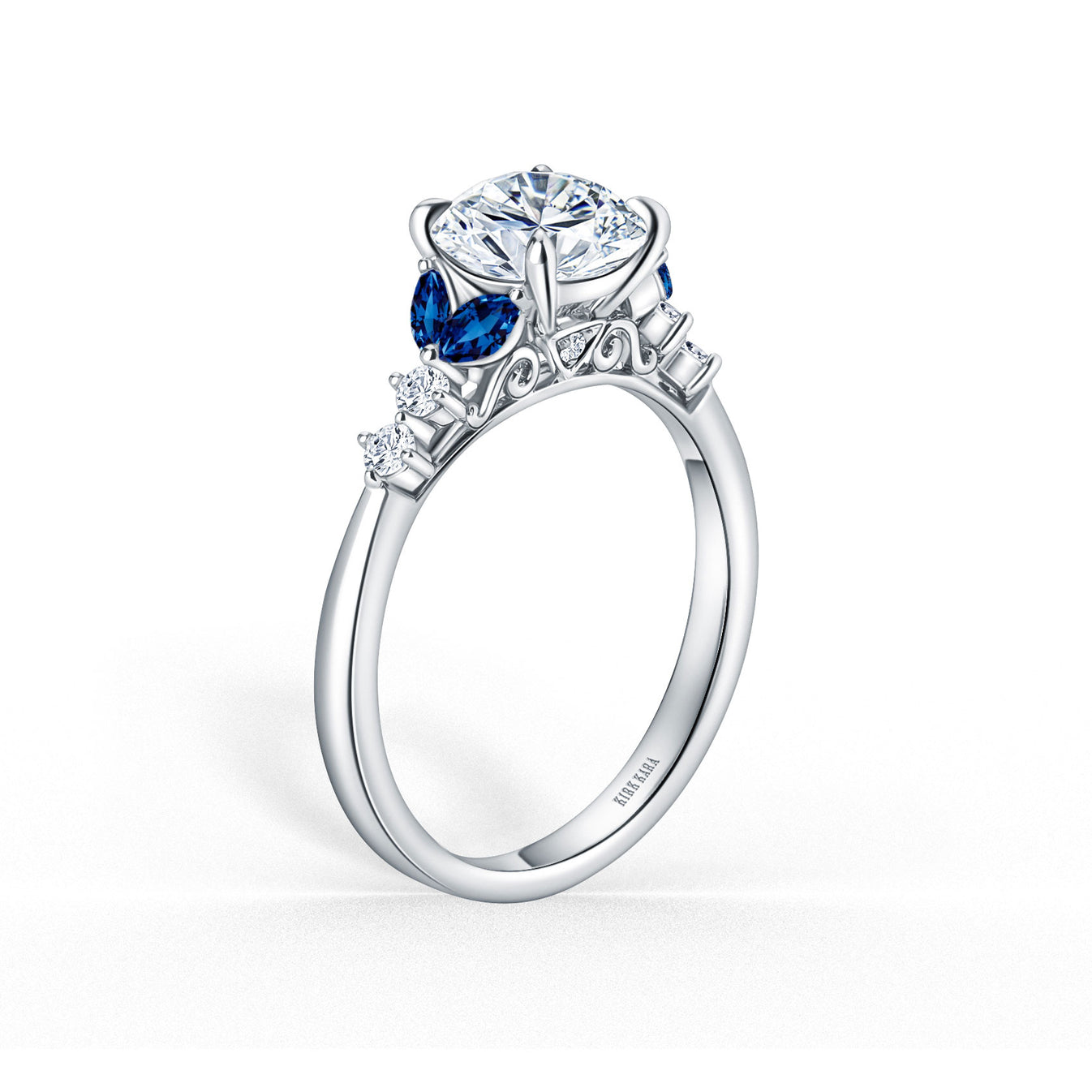 Marquise Blue Sapphire Accent Cathedral Engagement Ring