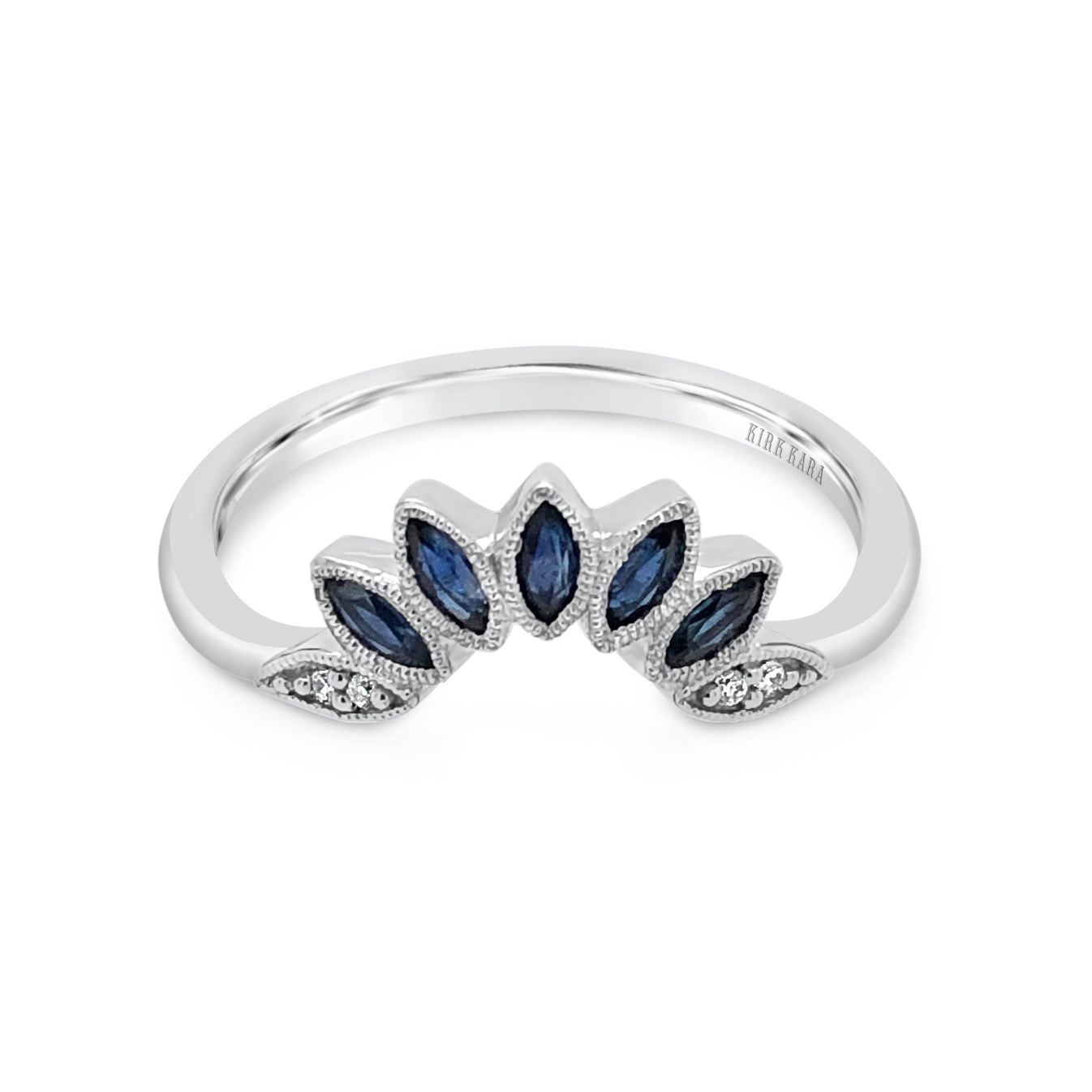 Floral Blue Sapphire Boho Contoured Diamond Wedding Band