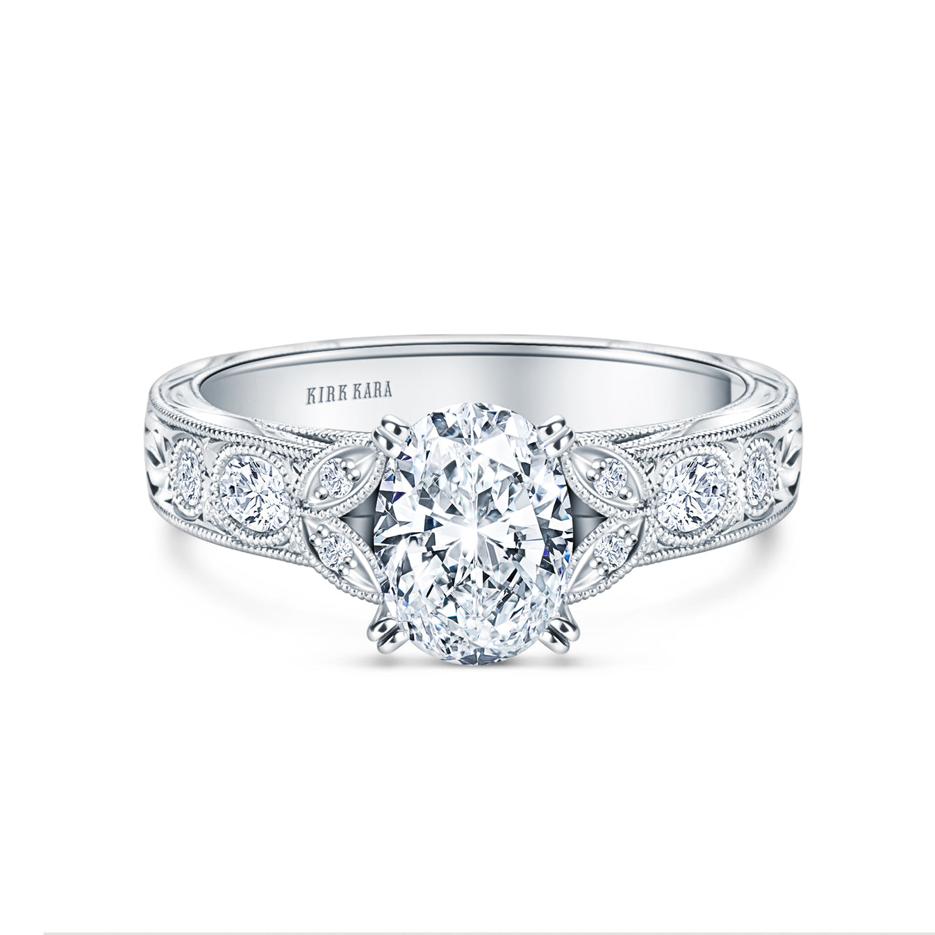 Accent your bridal gown with sparkling, elegant vines. We particularly love this nature-inspired element on cathedral ring designs. Hidden swirls add a romantic touch to this raised ring style.