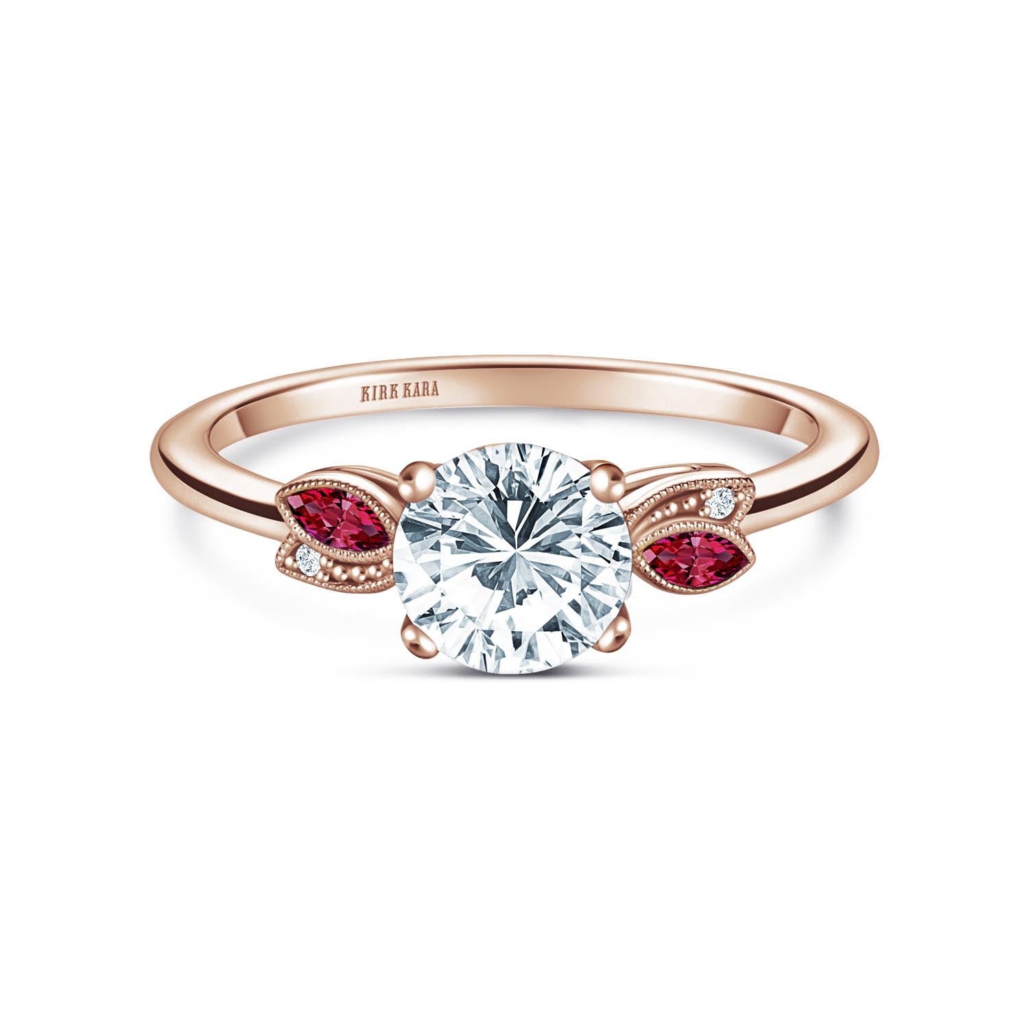The colorful gemstone trend is perfect for the bride who loves a pop of color. For a ring with lush color and beautiful brilliance, consider a design with rubies or sapphires accenting a traditional white diamond center stone.