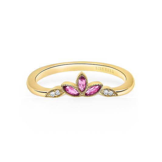 Floral Boho Pink Sapphire Diamond Wedding Band