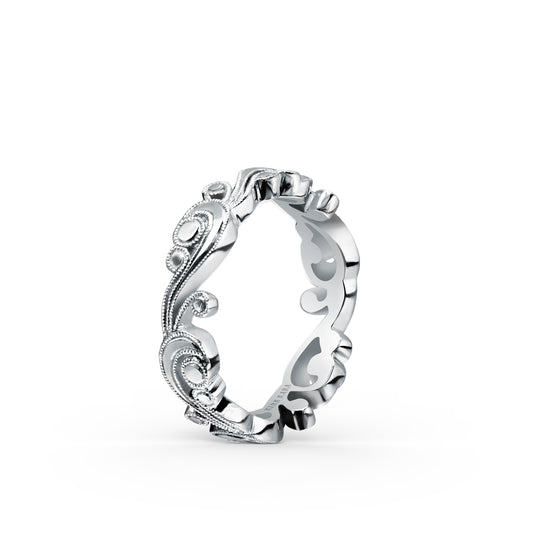 Whimsical Swirl Milgrain Diamond Wedding Band