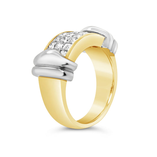 Vendor:Design No. SS5244Regular price $1,550Regular priceUnit price per$2,325Sale price $1,550 -35%Sale18K Two Tone Gold Princess Diamond Invisible Fashion Band