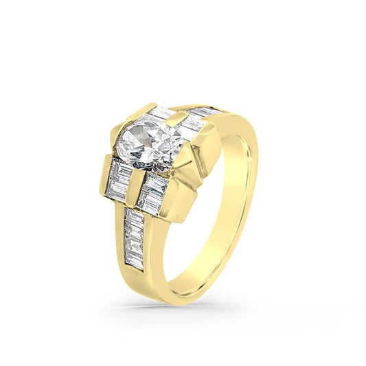 Vendor:Design No. SS5373Regular price $1,520Regular priceUnit price per$2,585Sale price $1,520 -40%Sale18K Yellow Gold Diamond Baguette Retro Vintage Ring