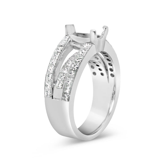 18K White Gold Split Shank Cathedral Diamond Engagement Ring