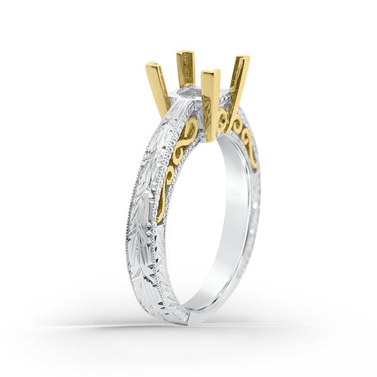 Vendor:Design No. SS6296Regular price $1,670Regular priceUnit price per$3,340Sale price $1,670 -50%Sale14k White & Yellow Gold Engraved Princess Solitaire Engagement Ring