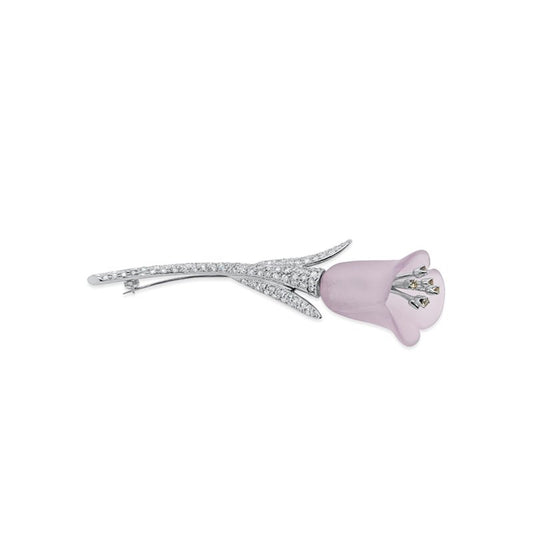 Vendor:Design No. SS5831-SRegular price $3,795Regular priceUnit price per$8,450Sale price $3,795 -55%Sale18K White Gold Diamond Carved Crystal Lilly Floral Brooch