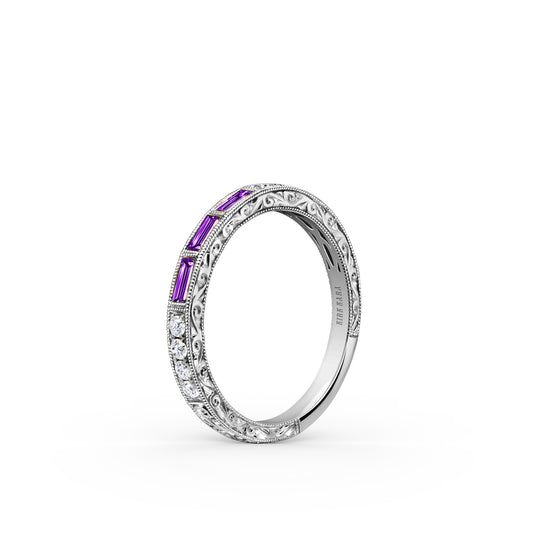 Amethyst Baguette Engraved Diamond Wedding Band