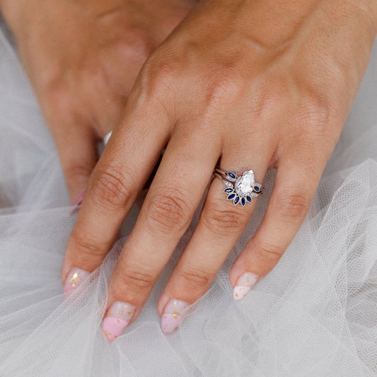 Vendor:Design No. K199DB-BRegular price $3,350Regular priceUnit price perSale price $3,350Prong Set Milgrain Pear Blue Sapphire Wedding Band