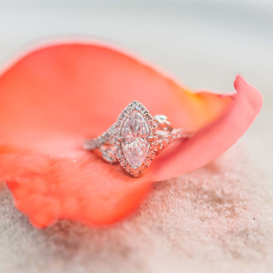 Three Leaf Halo Diamond Engagement Ring