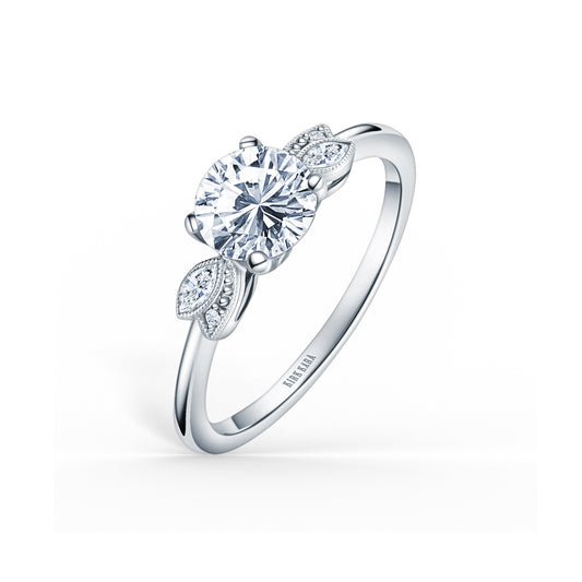 Elegant Three Leaf Halo Diamond Engagement Ring