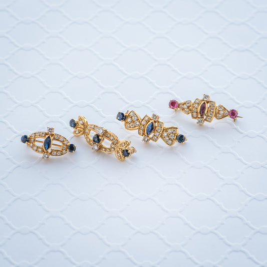 Vendor:Design No. KF1390SD-BRRegular price $7,930Regular priceUnit price perSale price $7,93018K Yellow Gold Diamond and Sapphire Vintage Brooch