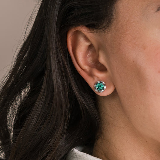 Vendor:Design No. KF408R5RGM-PRegular price $2,695Regular priceUnit price perSale price $2,695Delicate Floral Green Moissanite Diamond Stud Earrings