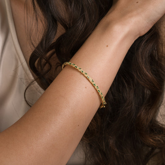 Botanical Floral Tsavorite Marquise Bangle Bracelet