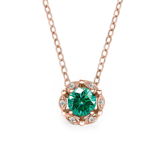 Vendor:Design No. KF408R5RGM-ERegular price $3,495Regular priceUnit price perSale price $3,495Floral Milgrain Green Moissanite Diamond Necklace