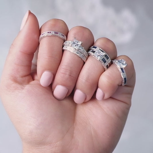 Vendor:Design No. K138SD-BRegular price $3,540Regular priceUnit price perSale price $3,540Blue Sapphire Baguette Engraved Diamond Wedding Band