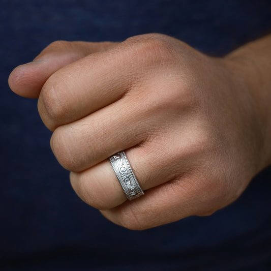 Vendor:Design No. K318-B55Regular price $3,840Regular priceUnit price perSale price $3,840Scroll Engraved Rope Milgrain Wedding Band, 7.50mm