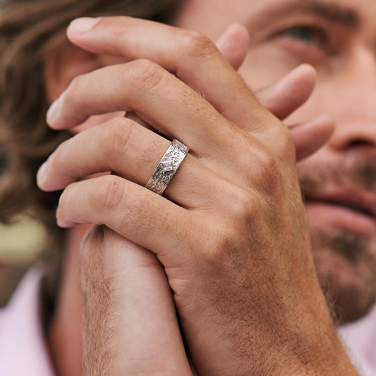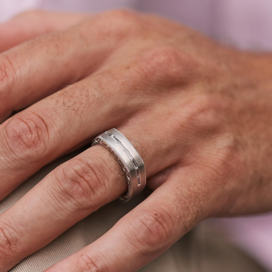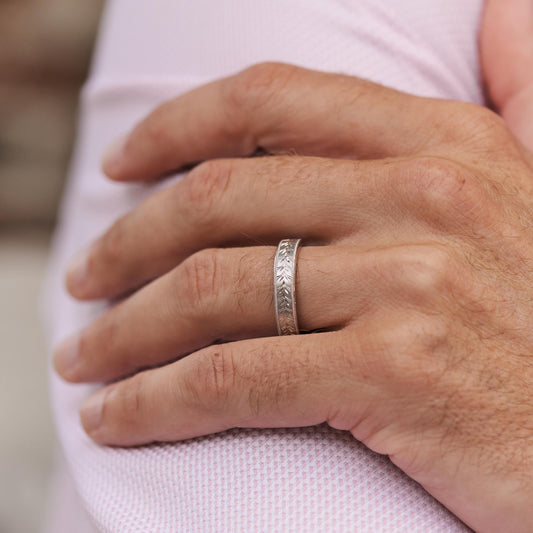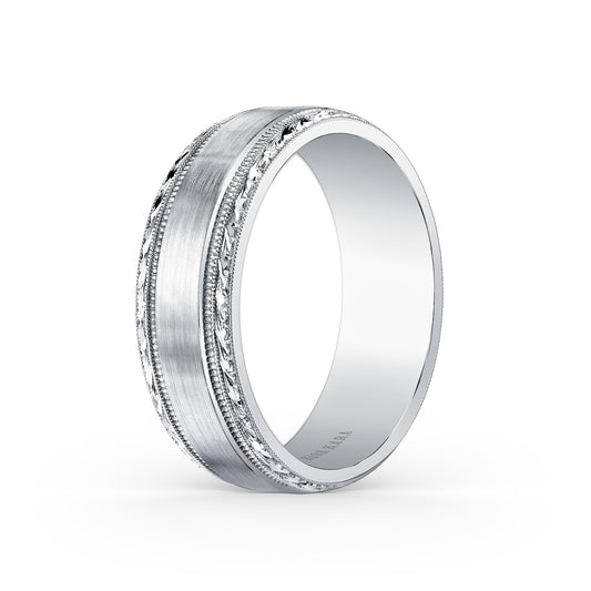 Engraved Edge Satin Finish Wedding Band, 7mm