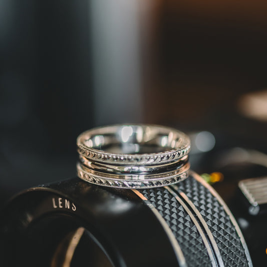 Vendor:Design No. SS6974M-B5TTRegular price $4,710Regular priceUnit price perSale price $4,710Thin Two Tone Scroll Engraved Milgrain Wedding Band, 5mm