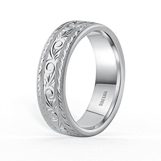 Scroll Engraved Milgrain Wedding Band, 7mm