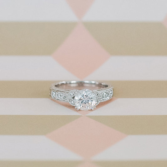 Hand Engraved Vintage Inspired Diamond Solitaire Engagement Ring