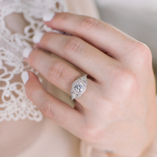 Elegant Three Leaf Halo Diamond Engagement Ring
