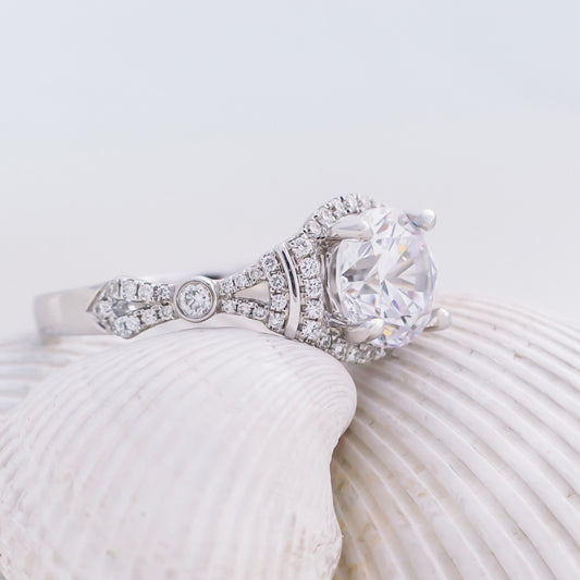 Vintage Halo Split Shank Ring with 1 1/2ct Round Certified Lab Diamond Center