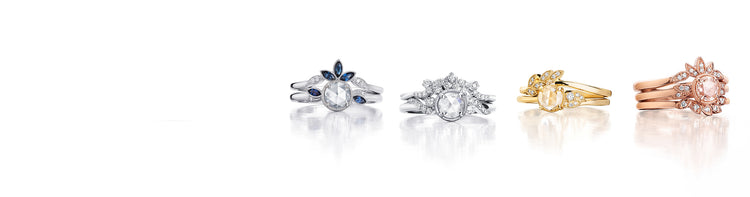 Floral Boho Blue Sapphire Rose Cut Diamond Engagement Ring