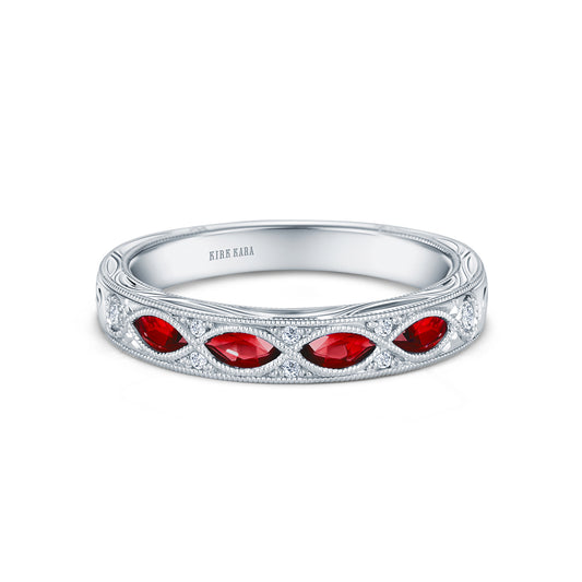 Vendor:Design No. K475D-BRegular price $3,900Regular priceUnit price perSale price $3,900Prong Set Milgrain Marquise Ruby Wedding Band
