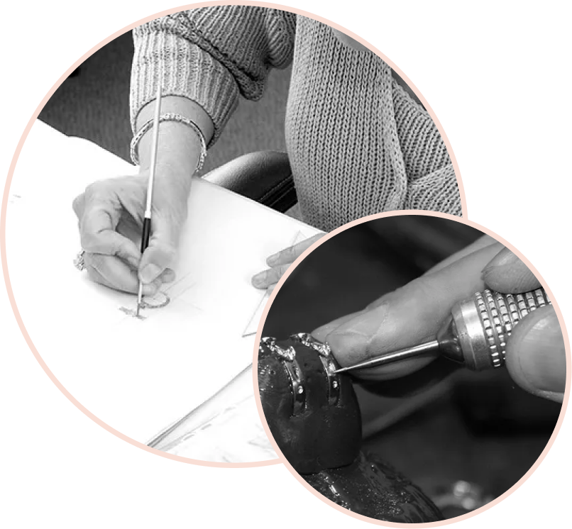 Our Master Craftsmen have spent their lives perfecting their art, and they do everything free form by hand. The designs are never traced or pre-set on a mold, which would diminish the fine details we’re known for and result in hundreds of identical rings. Every single one of our exquisite masterpieces is meticulously created by hand. One ring can take 20 hours to perfect on paper and 6 hours to engrave just right.