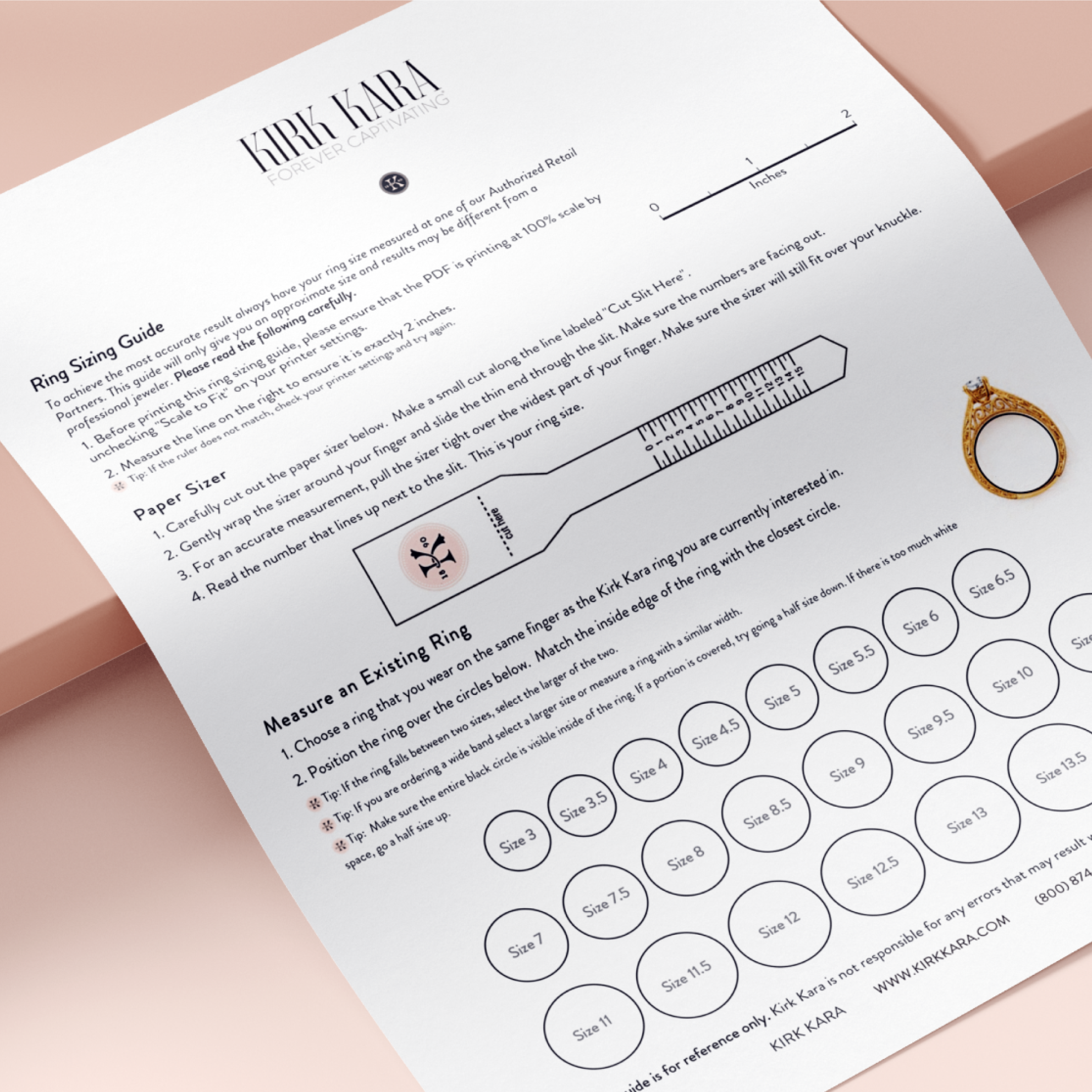 Don't know your ring size? Download and print our guide to get a better understanding of your fit. To achieve the most accurate result always have your ring size measured at one of our Authorized Retail Partners. This guide will only give you an approximate size and results may be different from a professional jeweler.