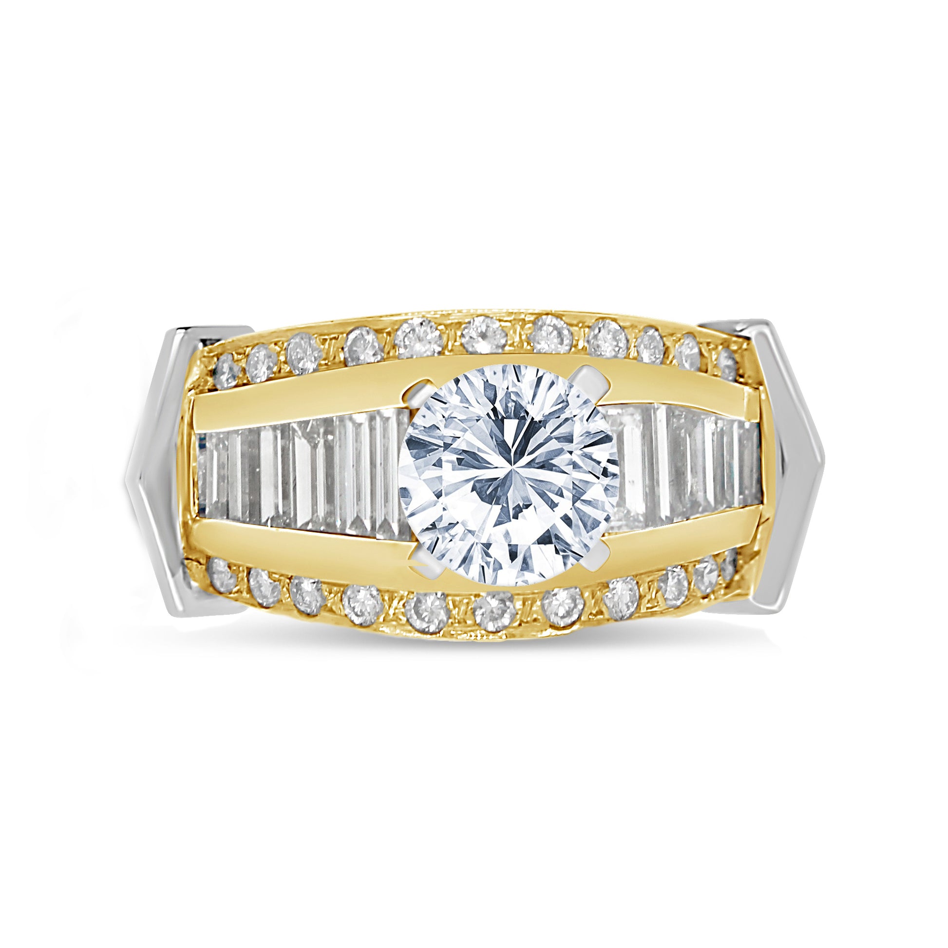 14k Two Tone Gold Baguette Diamond Wide Engagement Ring