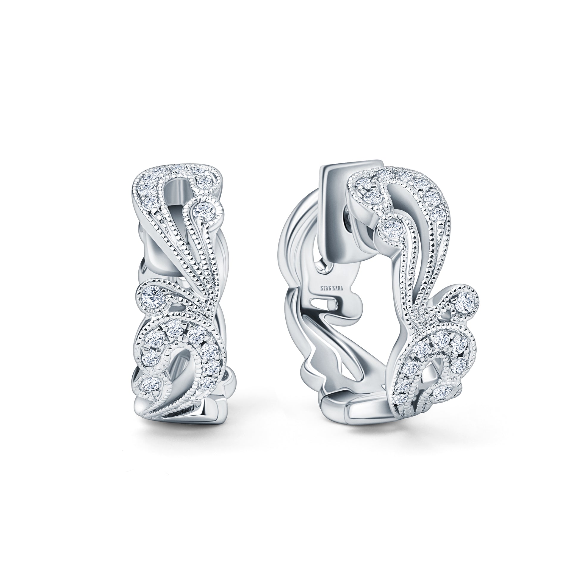 Artistic Swirl Milgrain Diamond Hoop Earrings