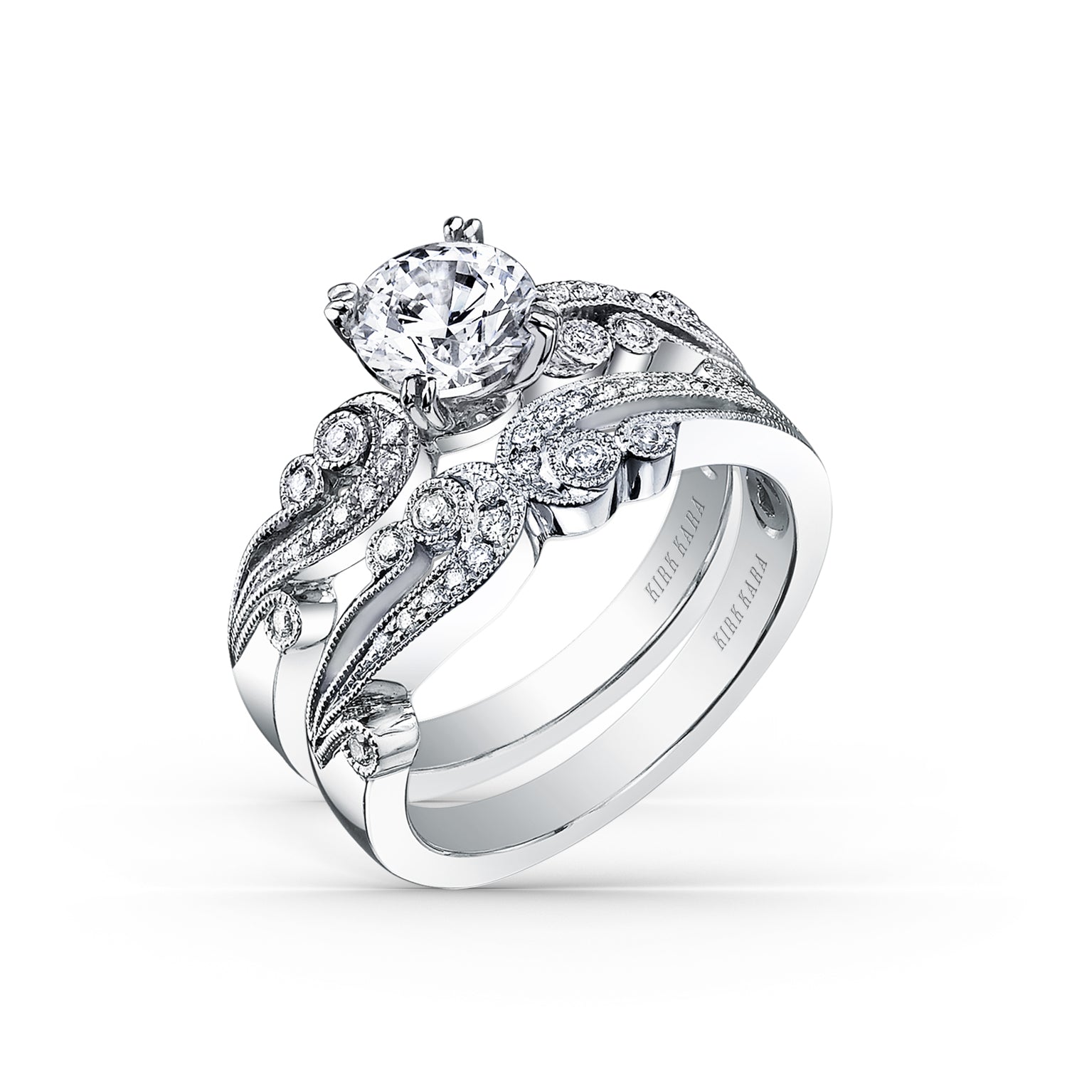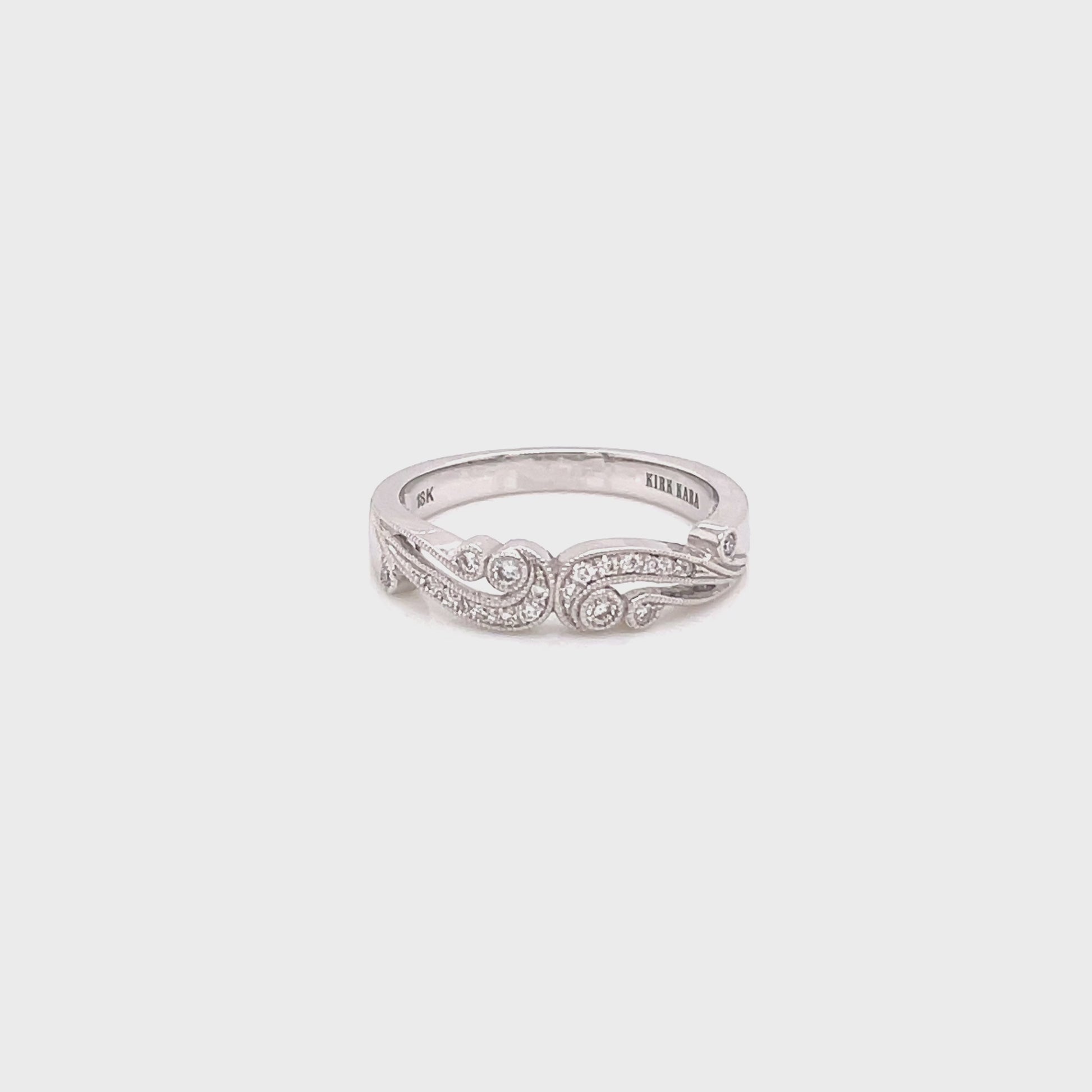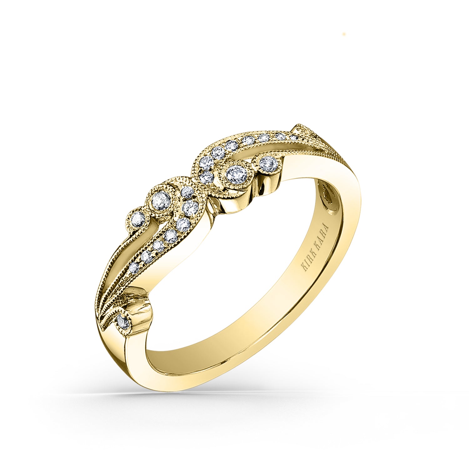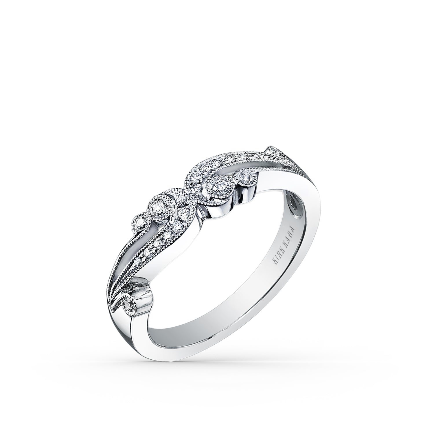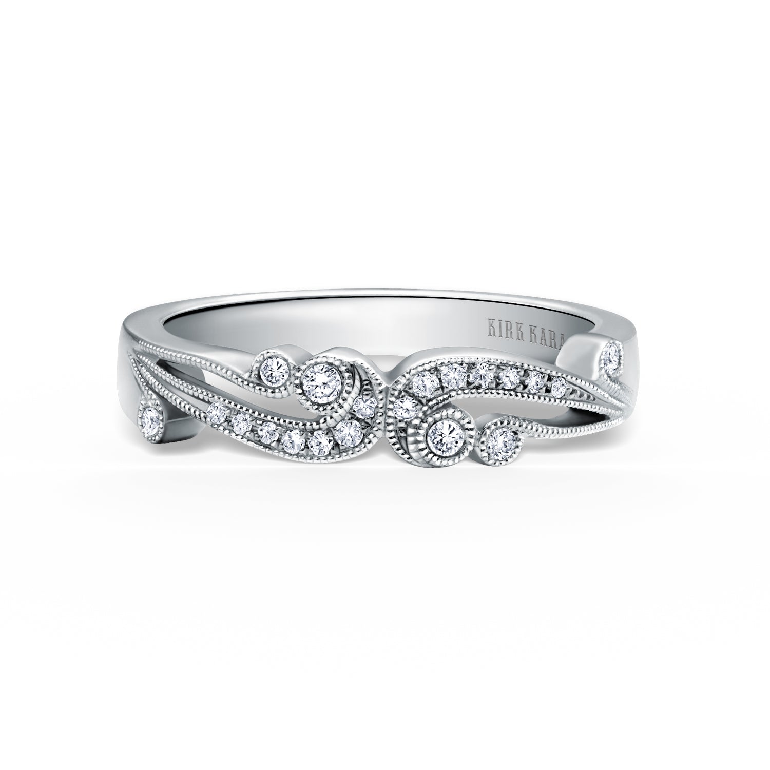 This whimsically chic, artistic design is a ladies' band from the Angelique collection. It features 1/8 ctw of diamonds and signature handcrafted milgrain edging. Both lab grown and natural diamonds are available for this band.