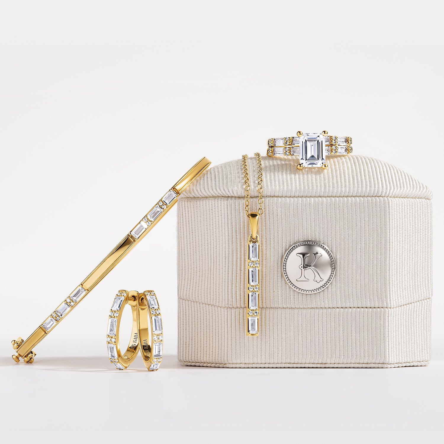 This deco inspired classic necklace is an artistic design from the Charlotte collection. It features 1/2 ctw of diamonds. The signature handcrafted details include scroll hand engravings and milgrain edging. Both lab grown and natural diamonds are available for this necklace. This necklace comes complete with an 18-inch chain.