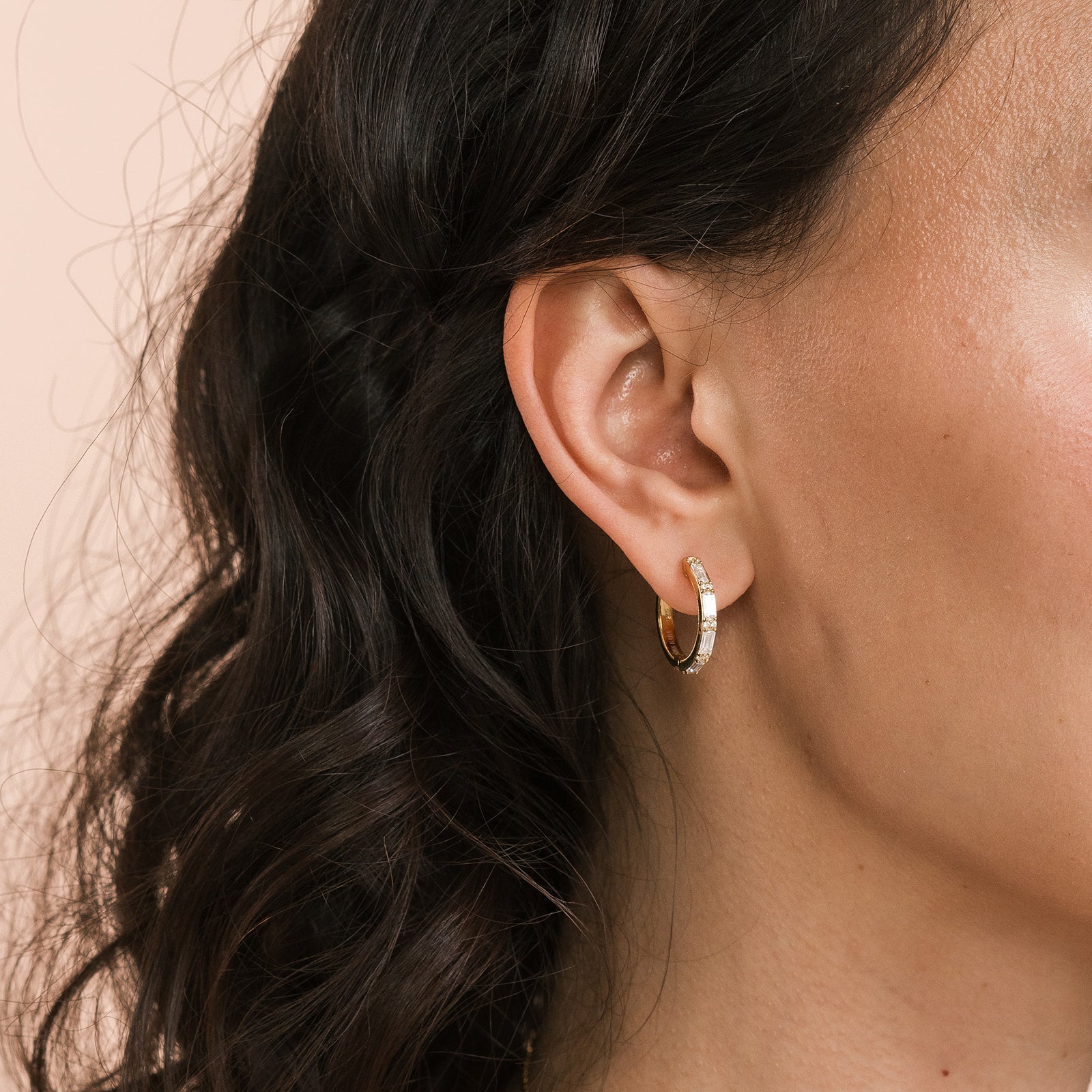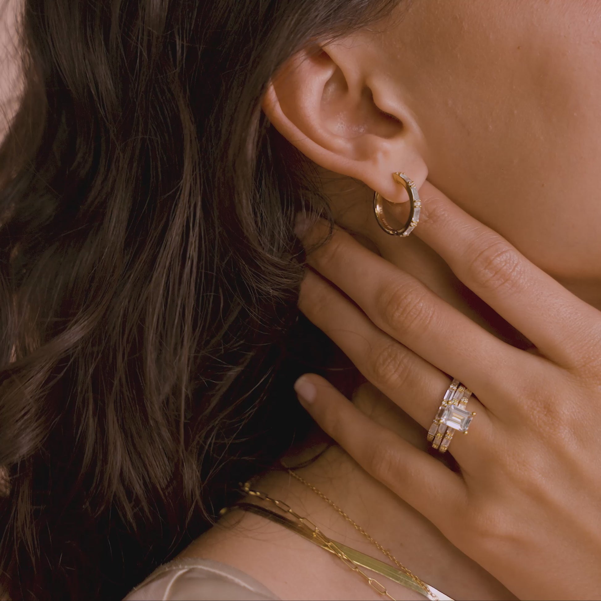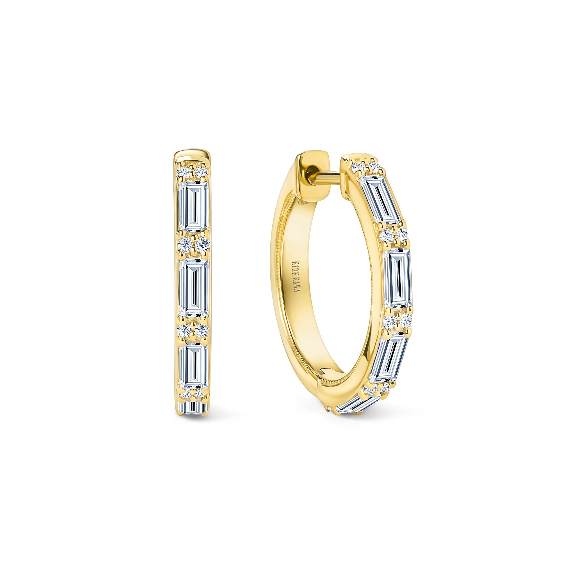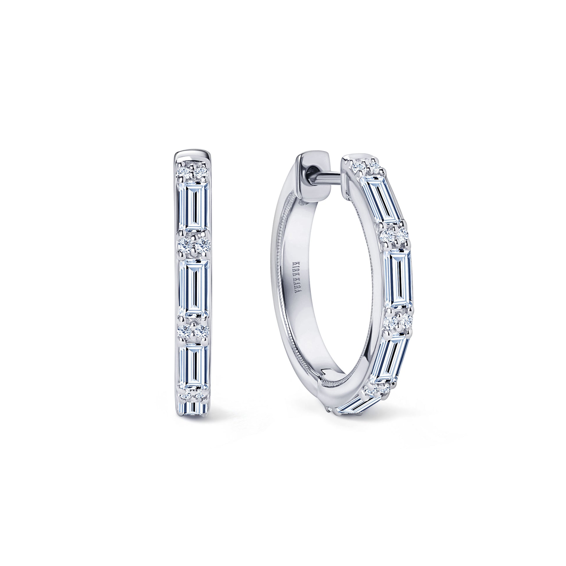 These deco inspired classic hoop earrings are an artistic design from the Charlotte collection. They feature 1/2 ctw of diamonds. The signature handcrafted details include milgrain edging. Both lab grown and natural diamonds are available for these earrings.