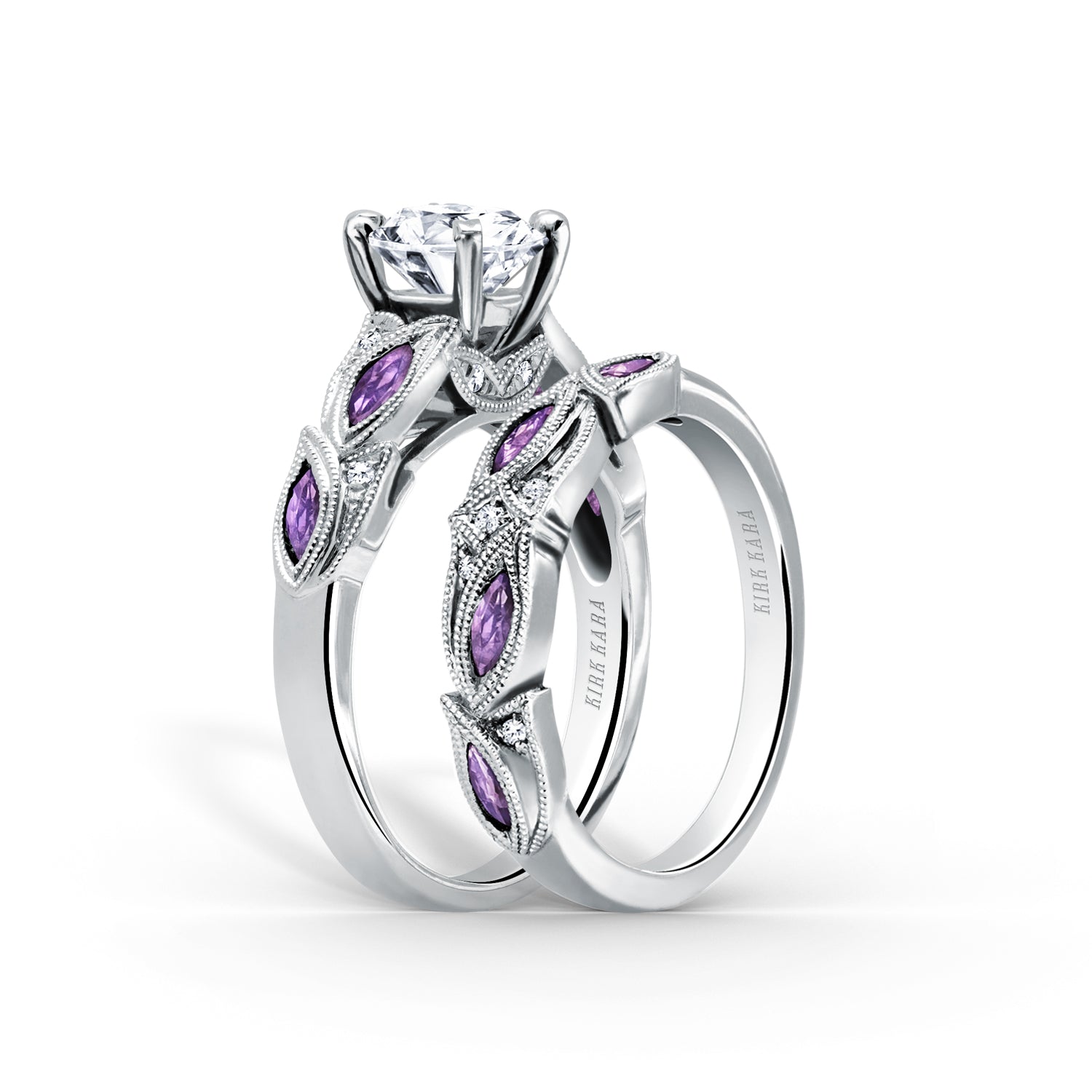 Botanical Floral Amethyst Marquise Diamond Engagement Ring