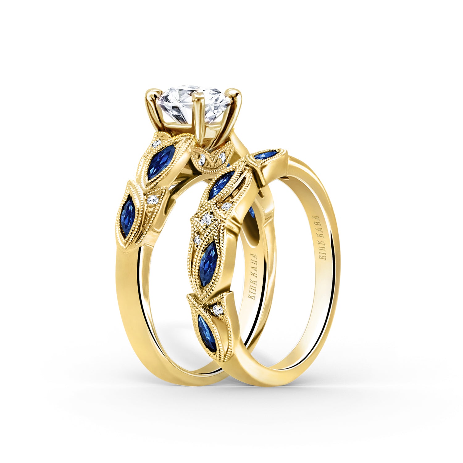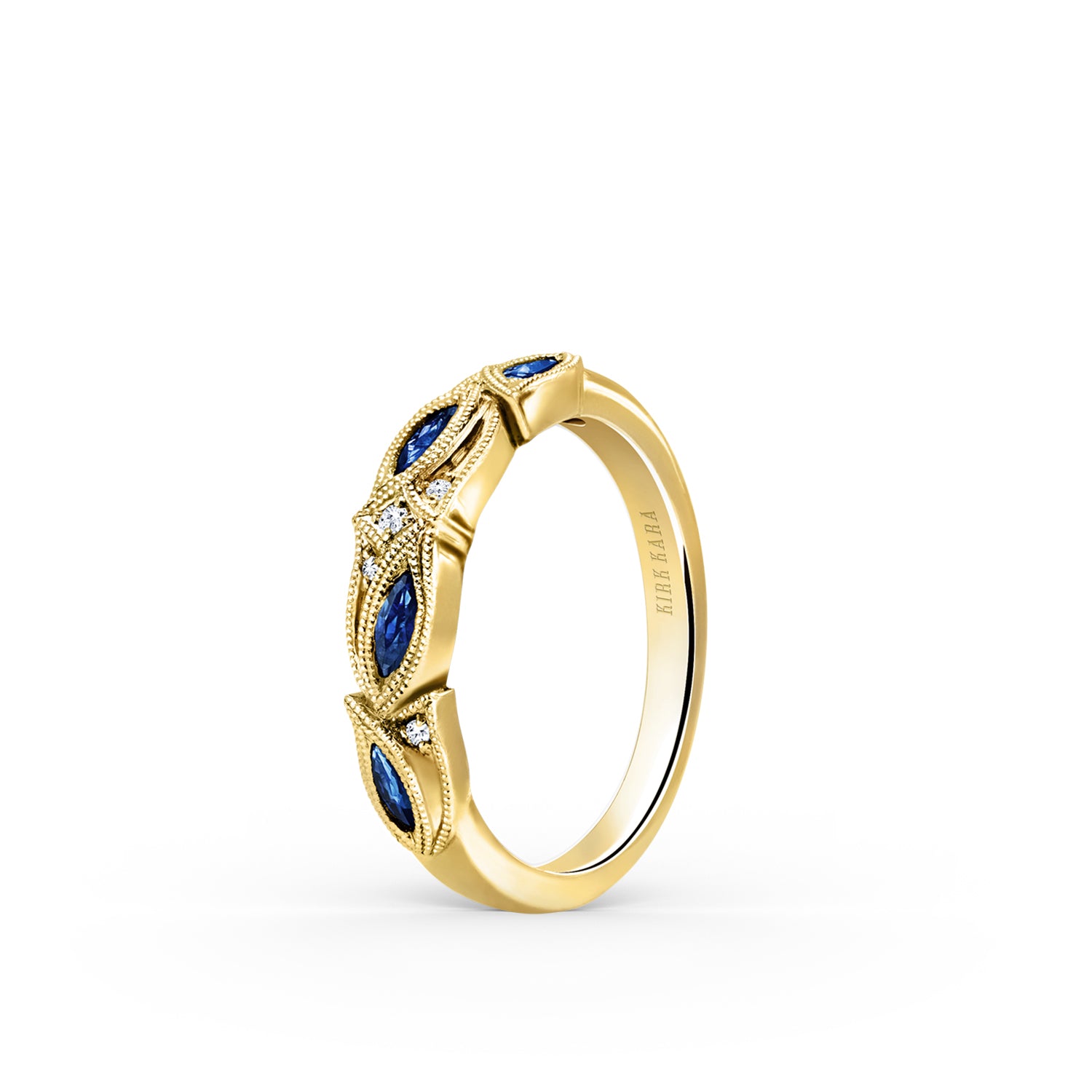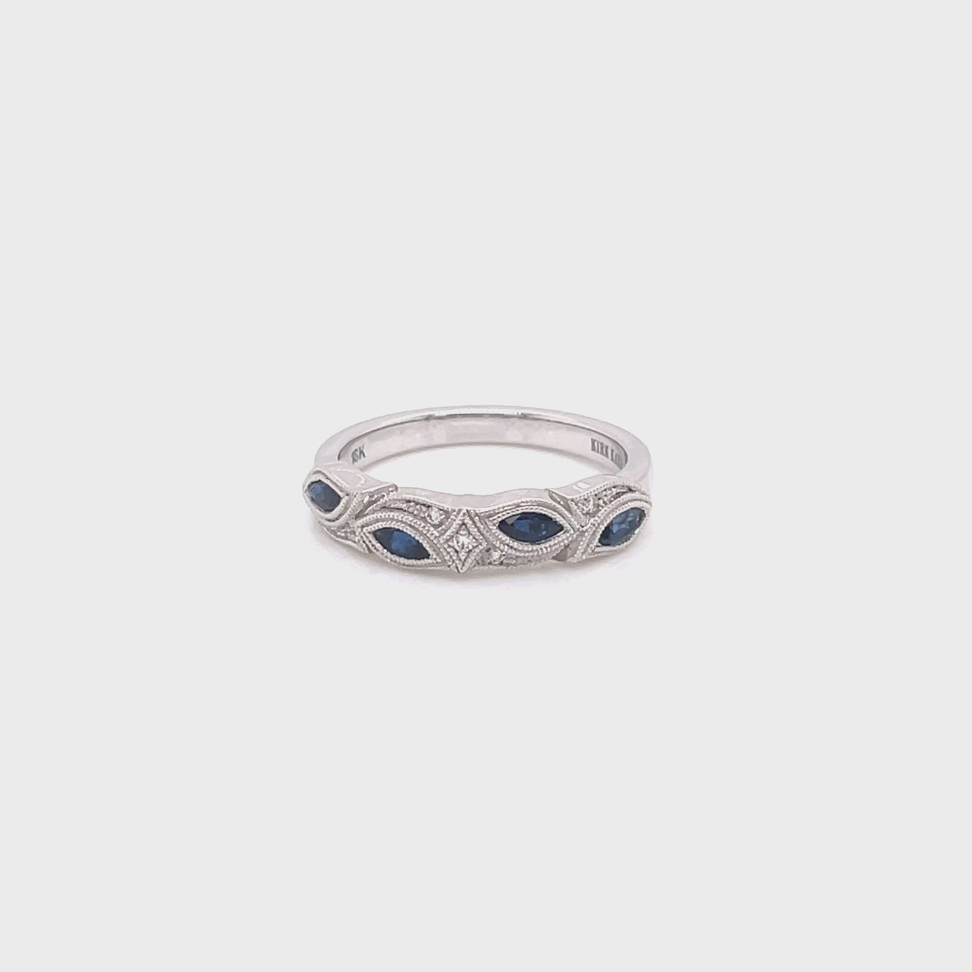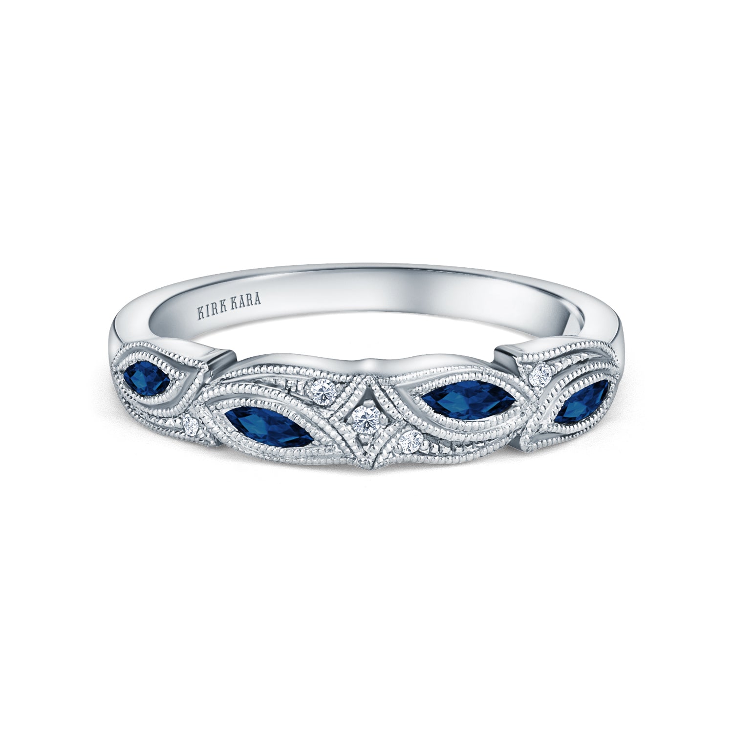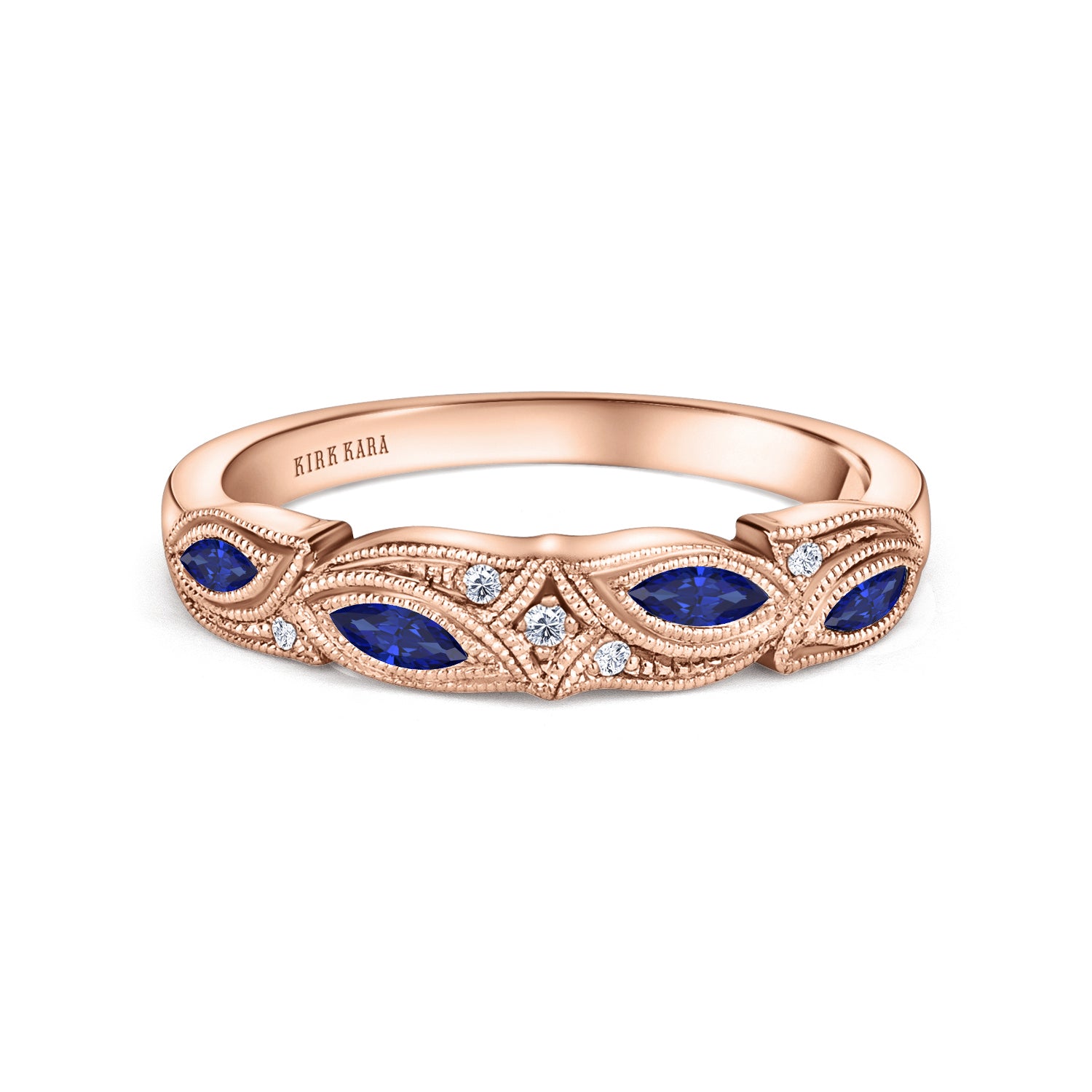 Botanical Floral Blue Sapphire Marquise Diamond Wedding Band