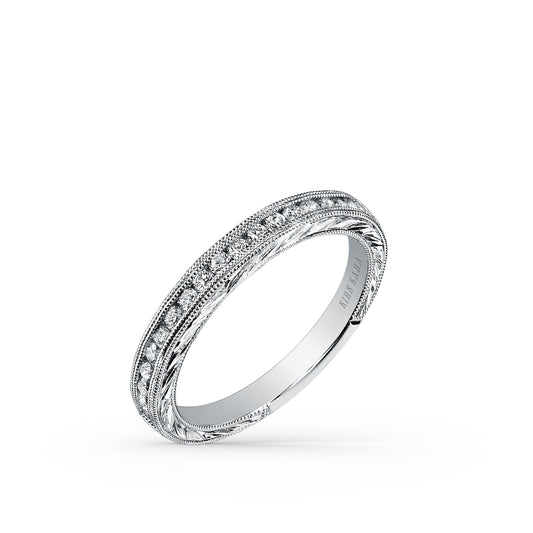 Channel Engraved Milgrain Diamond Wedding Band