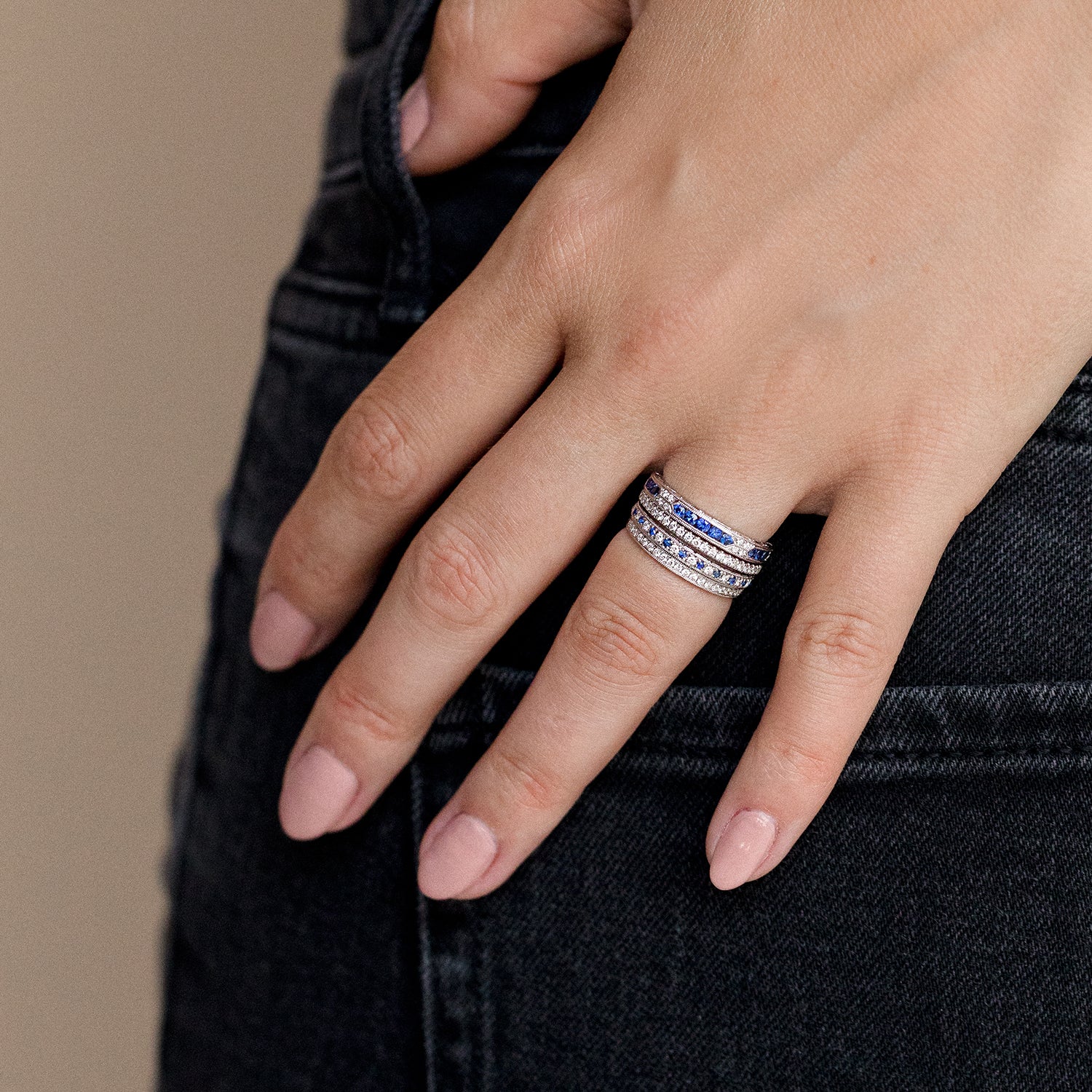 Channel Set Artful Blue Sapphire Diamond Wedding Band