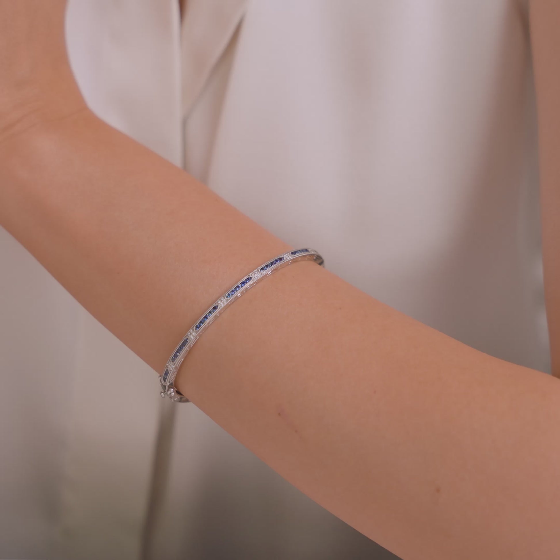 Channel Set Artful Blue Sapphire Diamond Bangle Bracelet