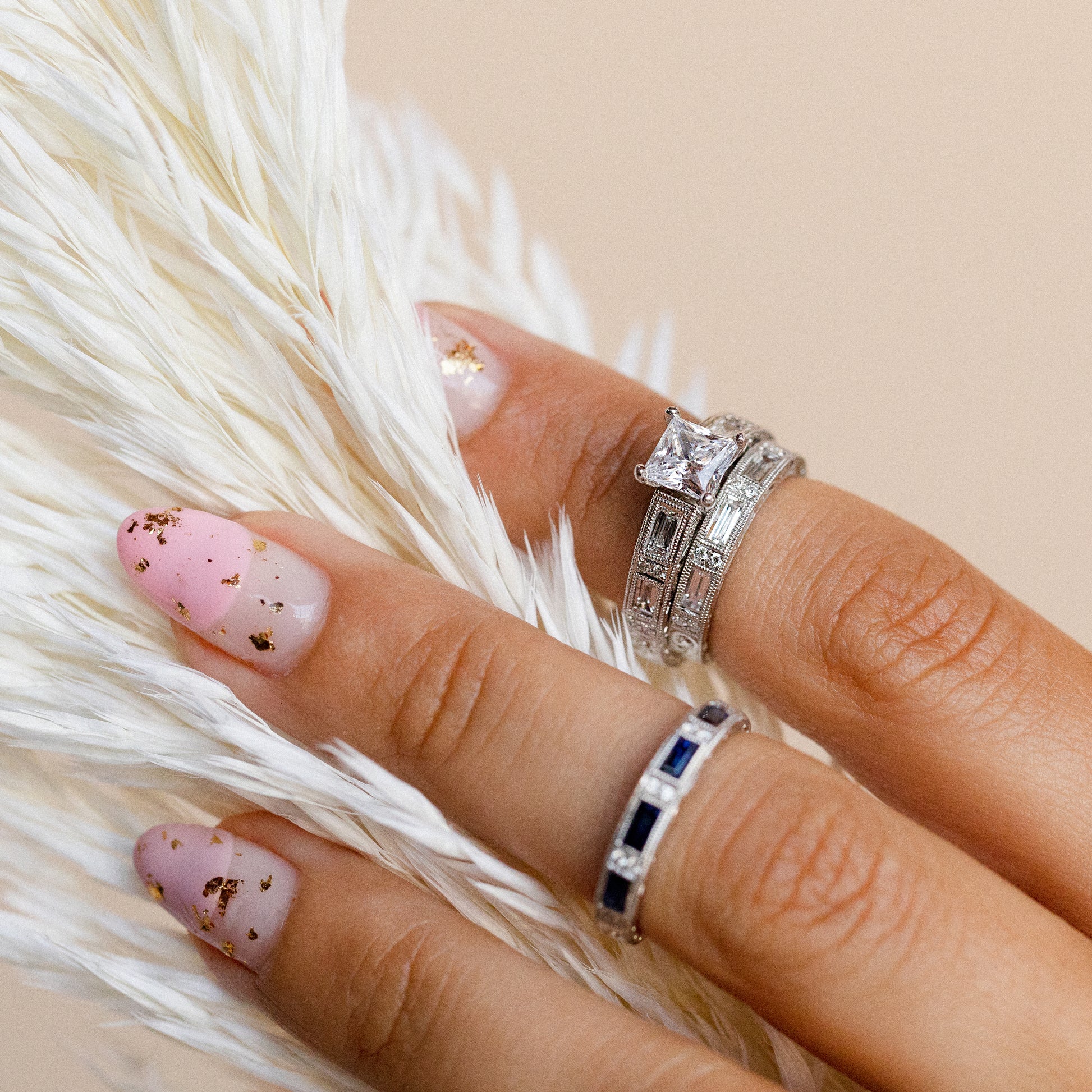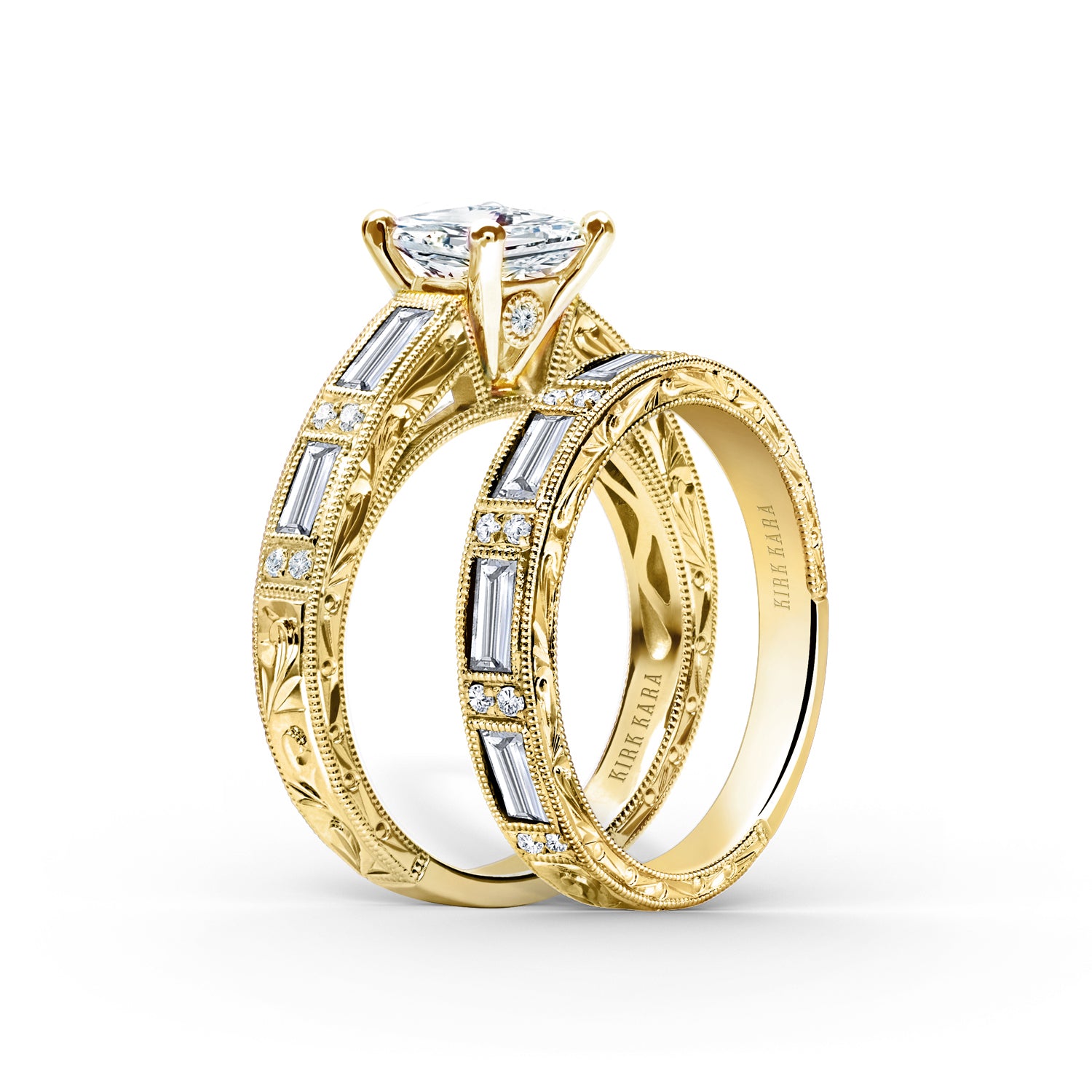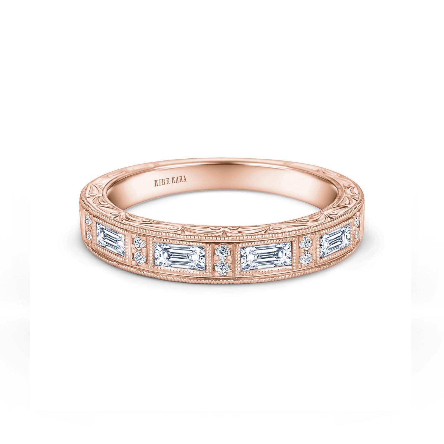 This deco inspired classic is an artistic design from the Charlotte collection. It features 1/2 ctw of diamonds. The signature handcrafted details include scroll hand engravings and milgrain edging. Both lab grown and natural diamonds are available for this band.