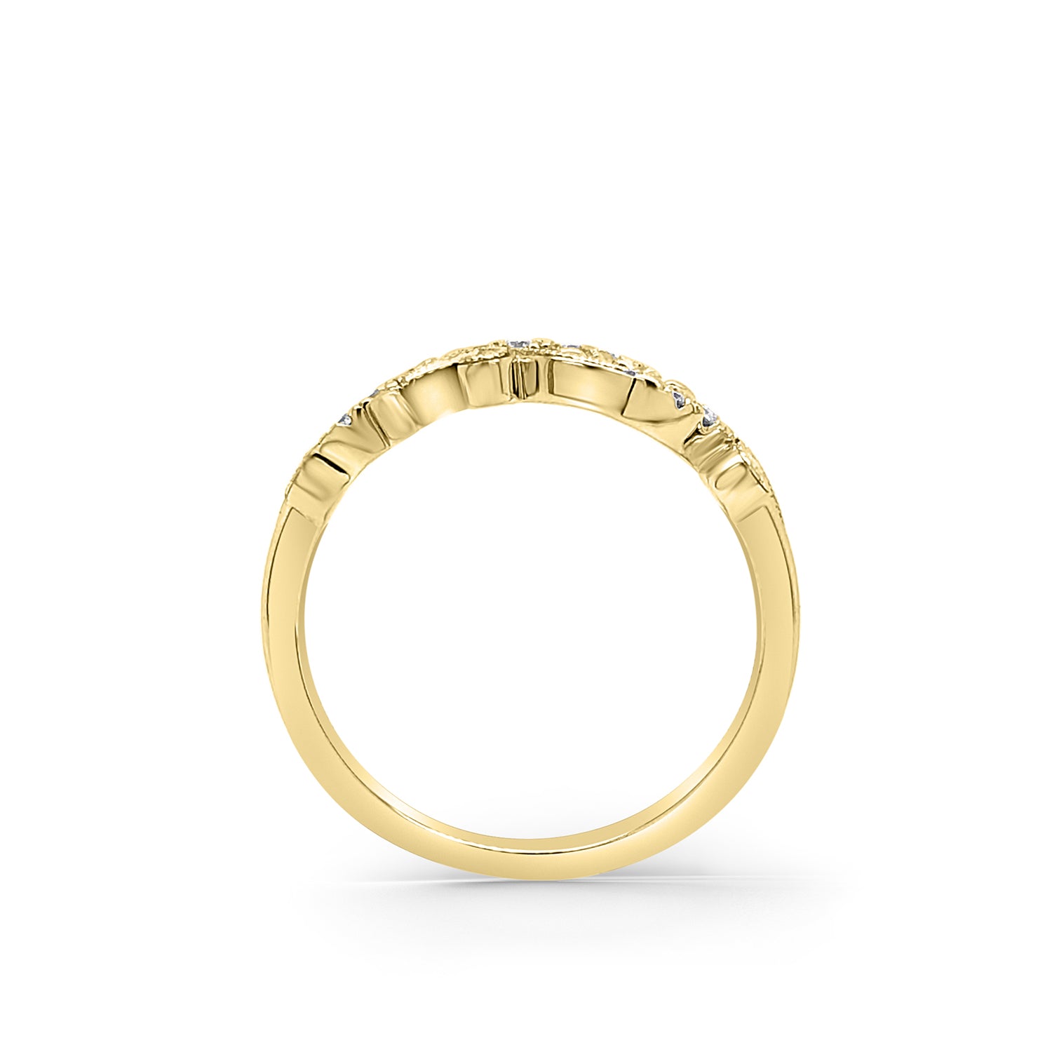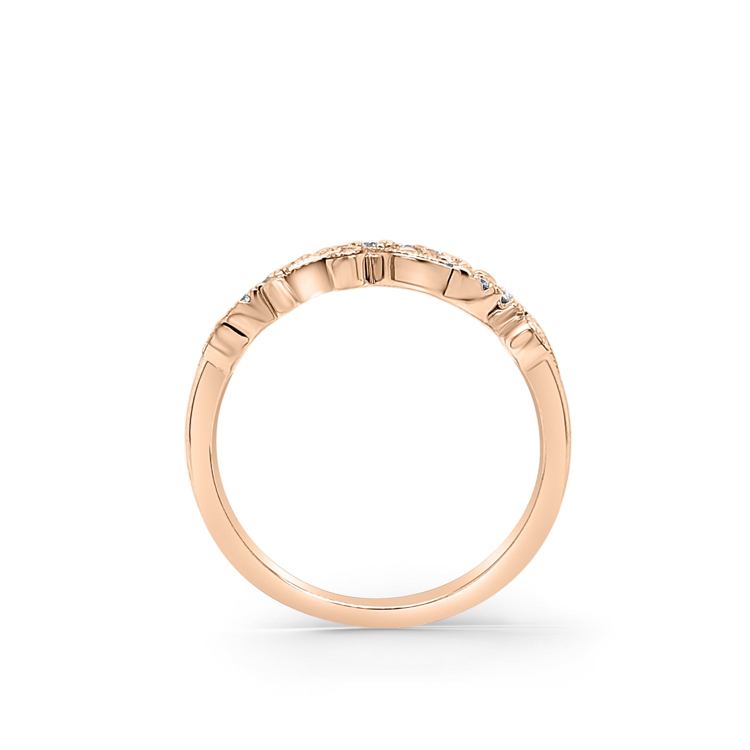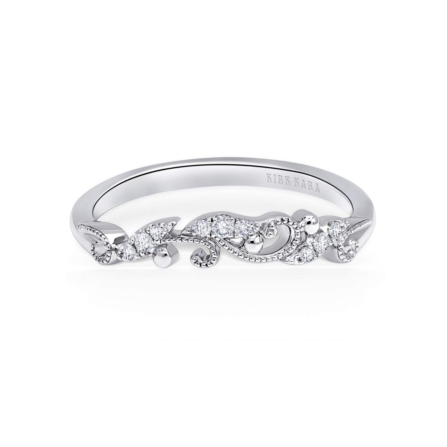 This whimsically chic, artistic design is a ladies' band from the Angelique collection. It features 1/20 ctw of diamonds and signature handcrafted milgrain edging. Both lab grown and natural diamonds are available for this band.