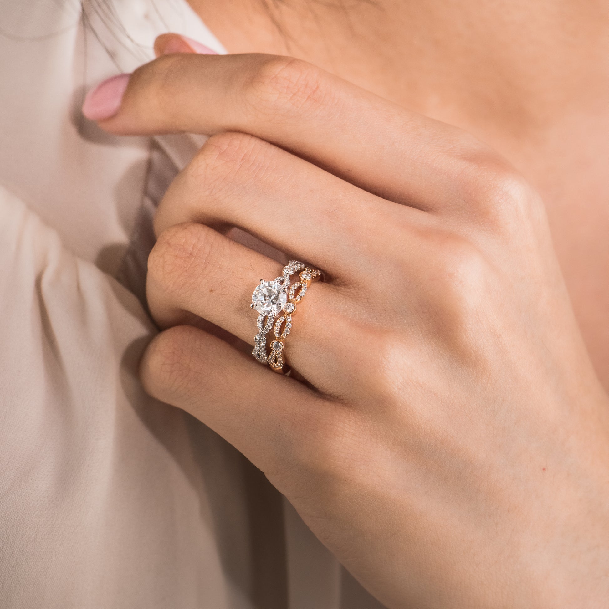 This romantic classic is an artistic design from the Lori collection. It features 1/5 ctw of diamonds. Both lab grown and natural diamonds are available for this band.