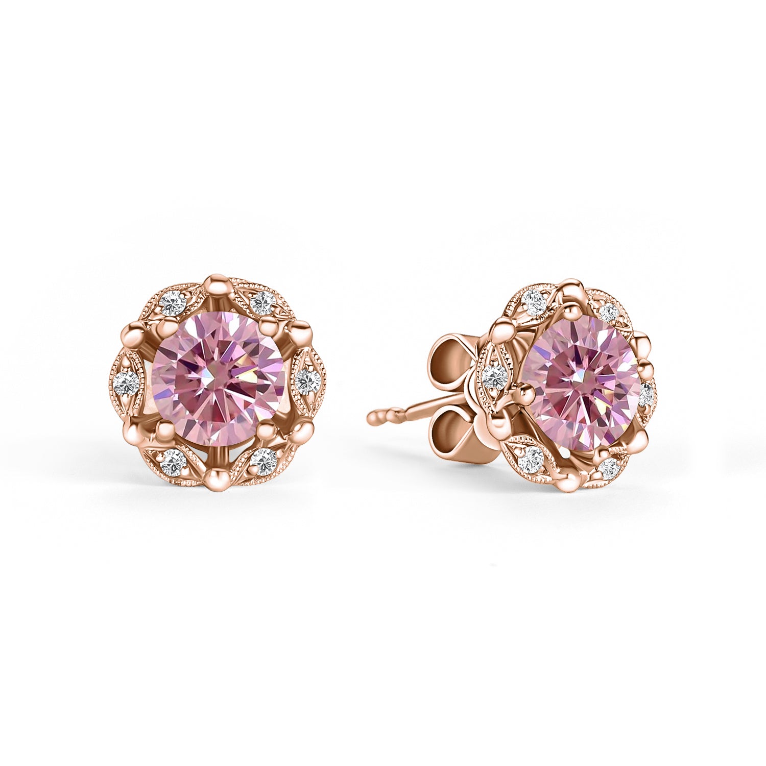 Delicate Floral Pink Moissanite Diamond Stud Earrings