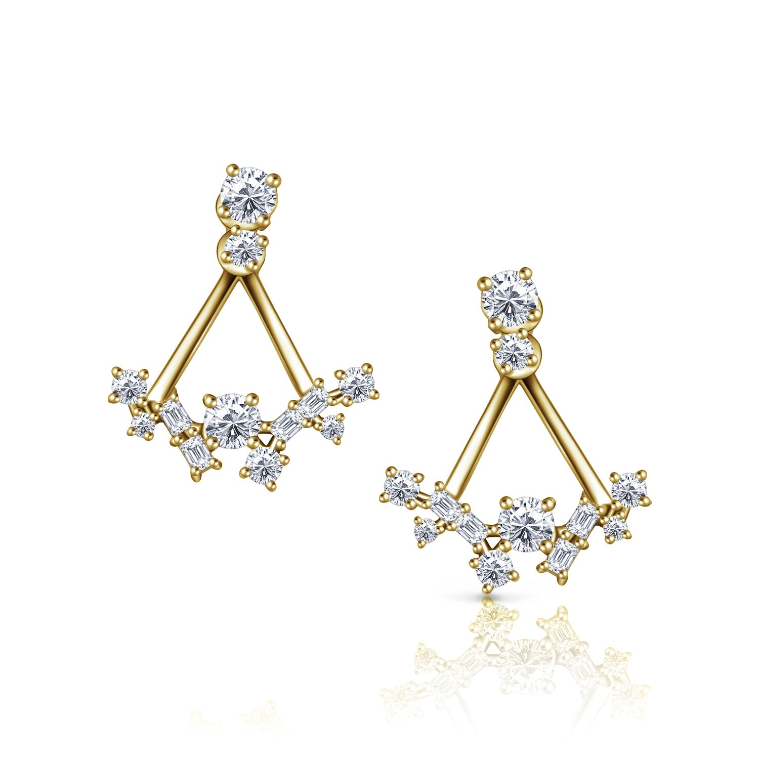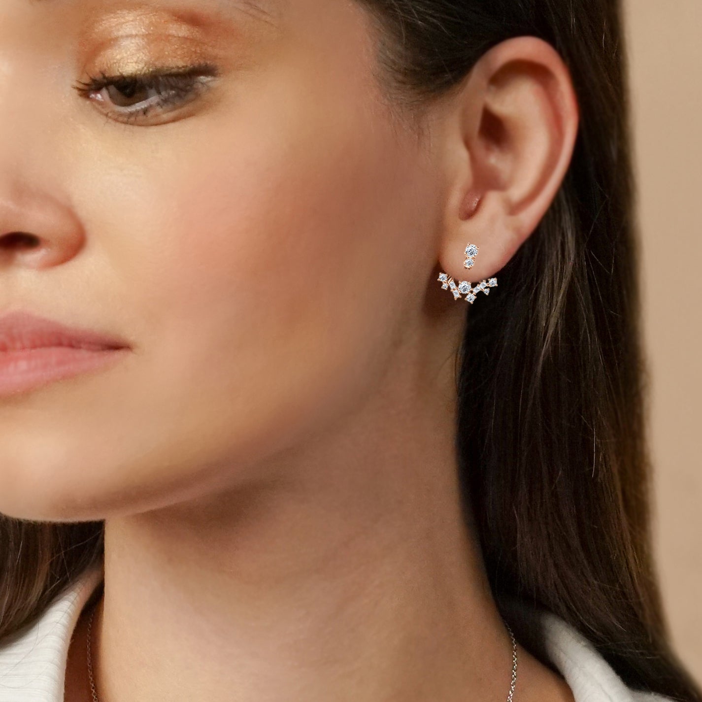 These elegant and chic, cluster earrings features 7/8 ctw of diamonds. These diamond studs can be worn alone or with featured diamond earring jackets. Lab created or natural diamonds are available options for the accent stones.