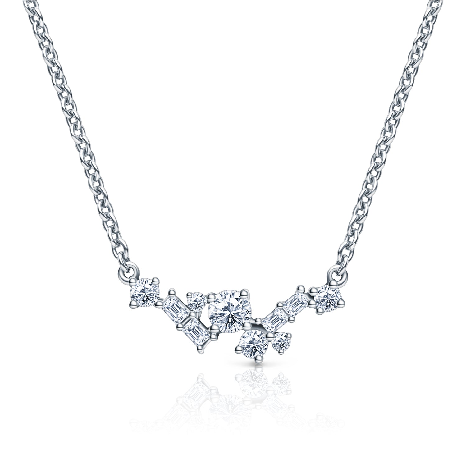 This elegant and chic, cluster necklace features 1/4 ctw of diamonds. This diamond necklace comes with an 18-inch chain. Lab created or natural diamonds are available options for the accent stones.