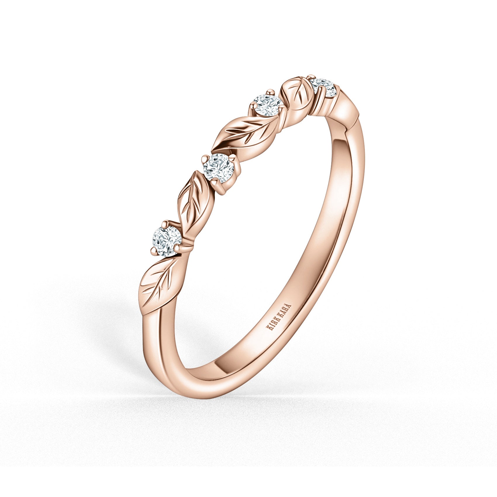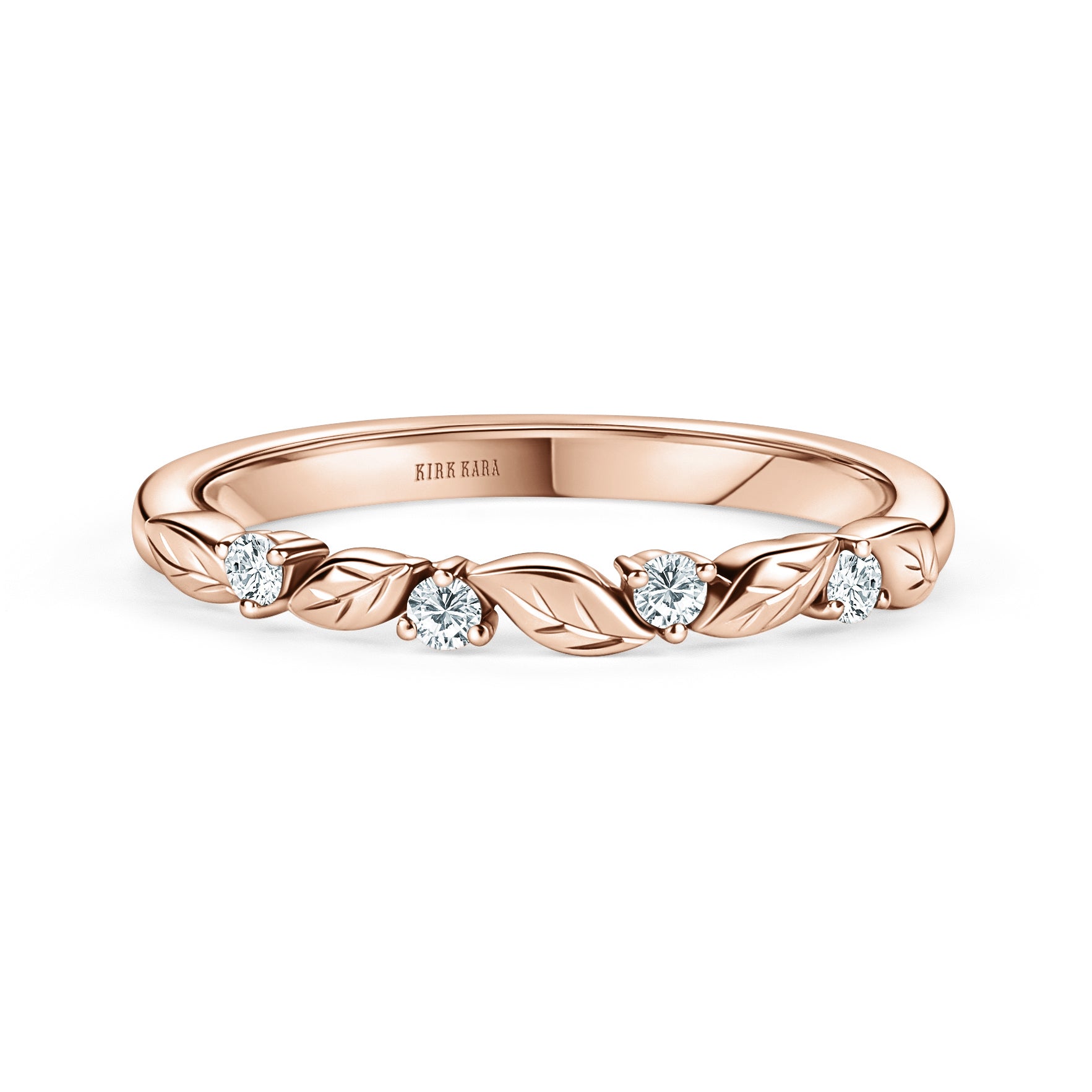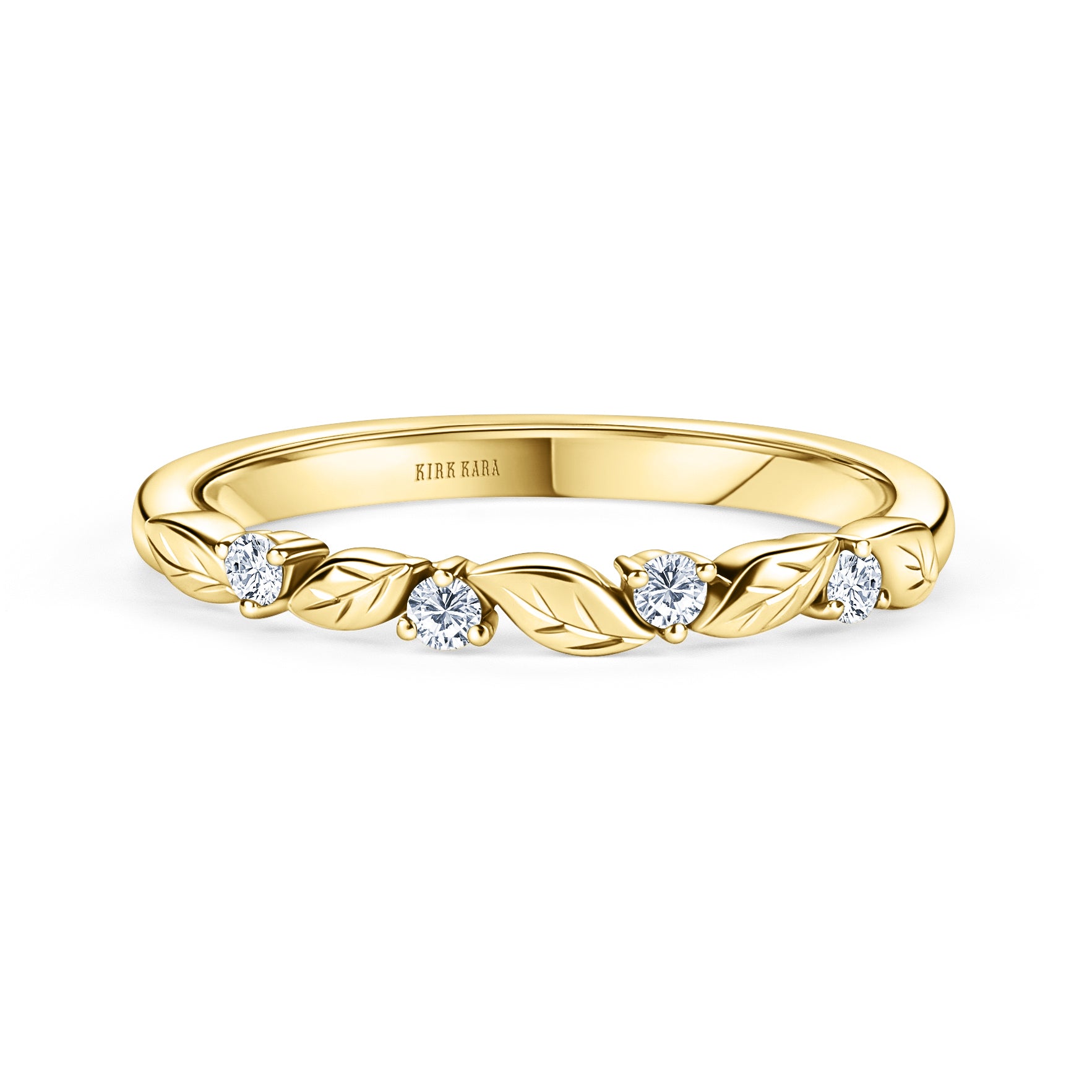 This nature-inspired design with floral details is from the Dahlia collection. It features 1/15 ctw of diamonds. The signature handcrafted details include leaf details. Both lab grown and natural diamonds are available for this band.