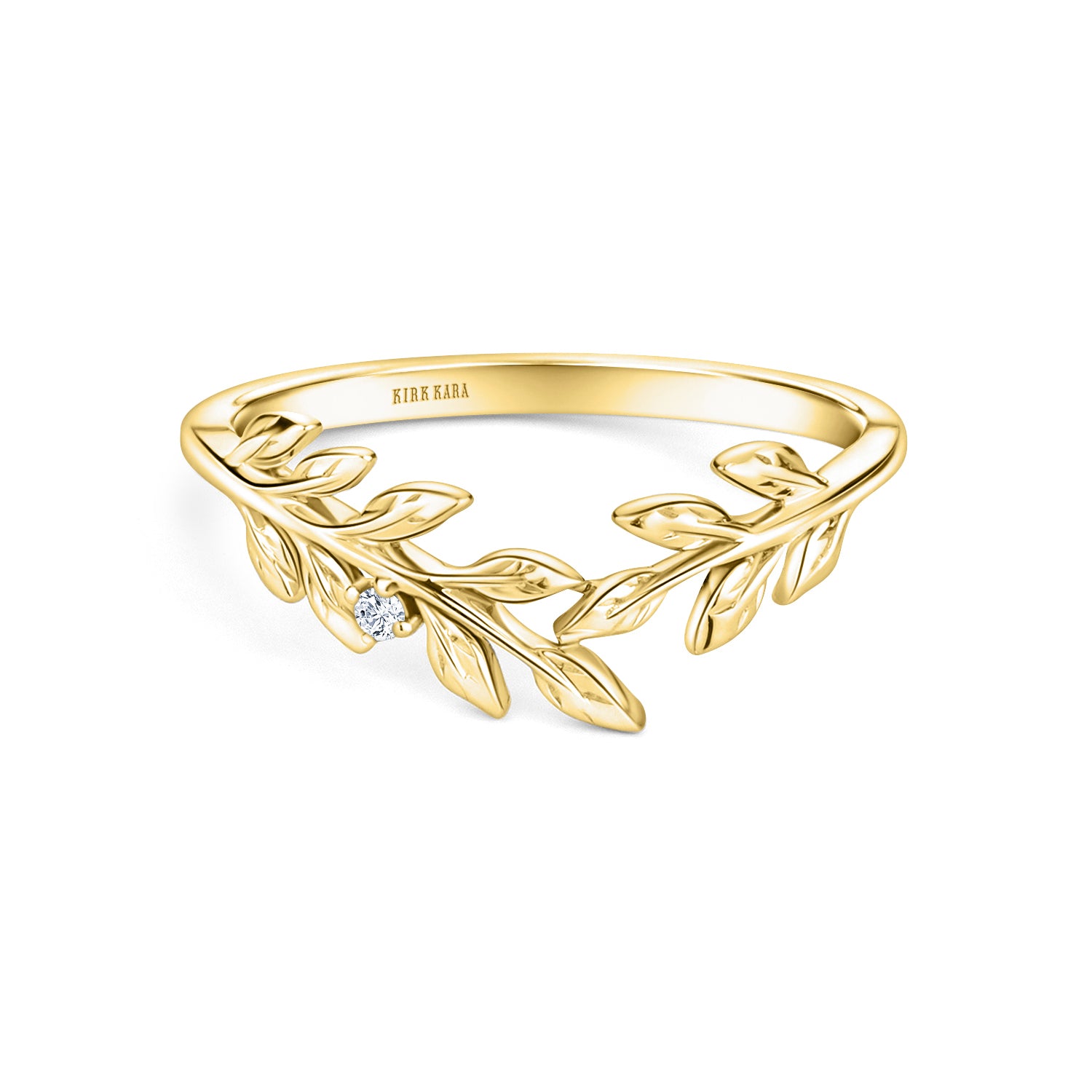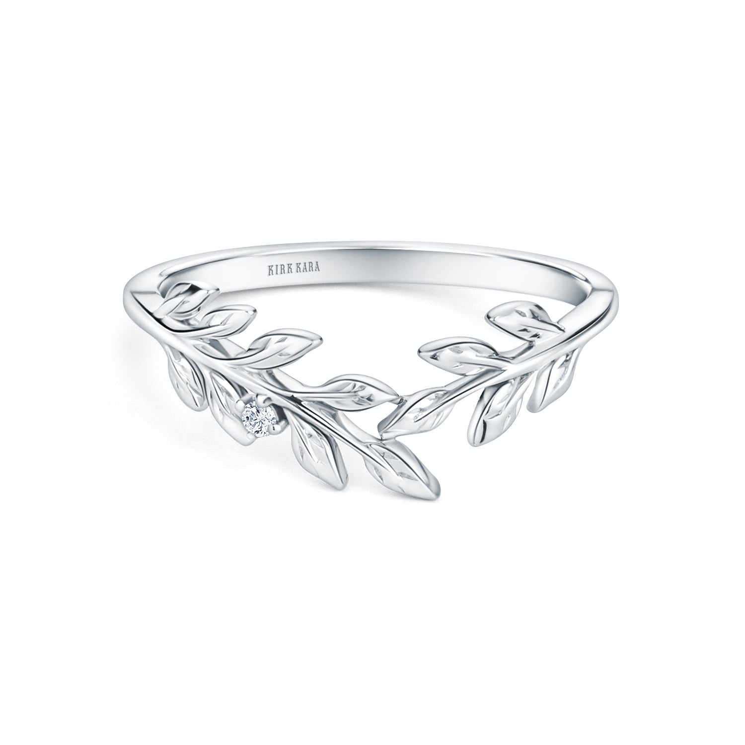 This nature-inspired design with floral details is from the Dahlia collection. It features 0.01 ctw of diamond. The signature handcrafted details include leaf details. Both lab grown and natural diamonds are available for this band.