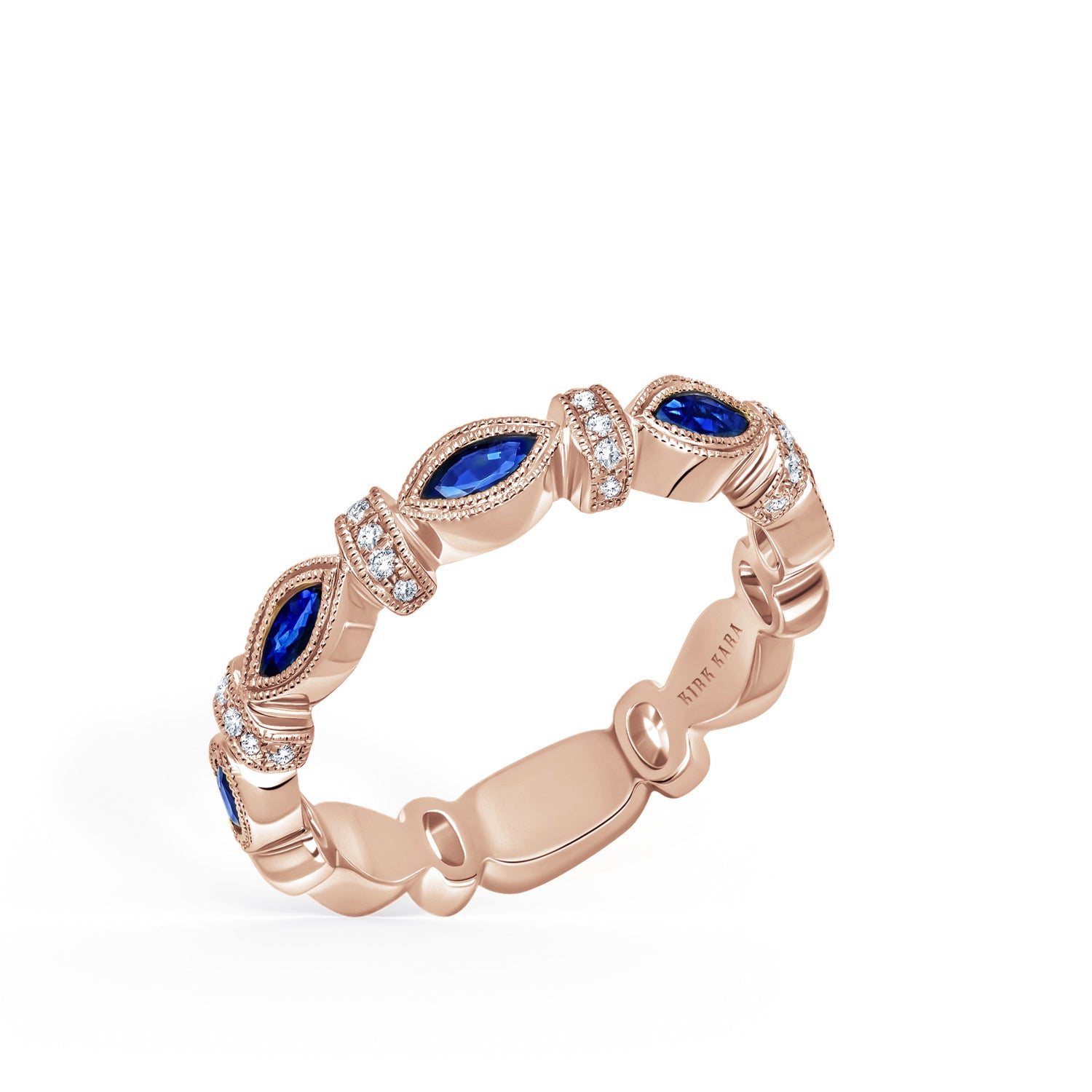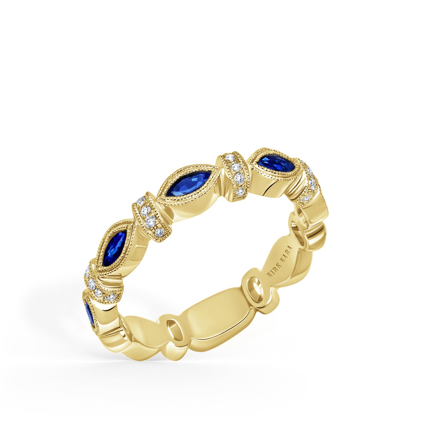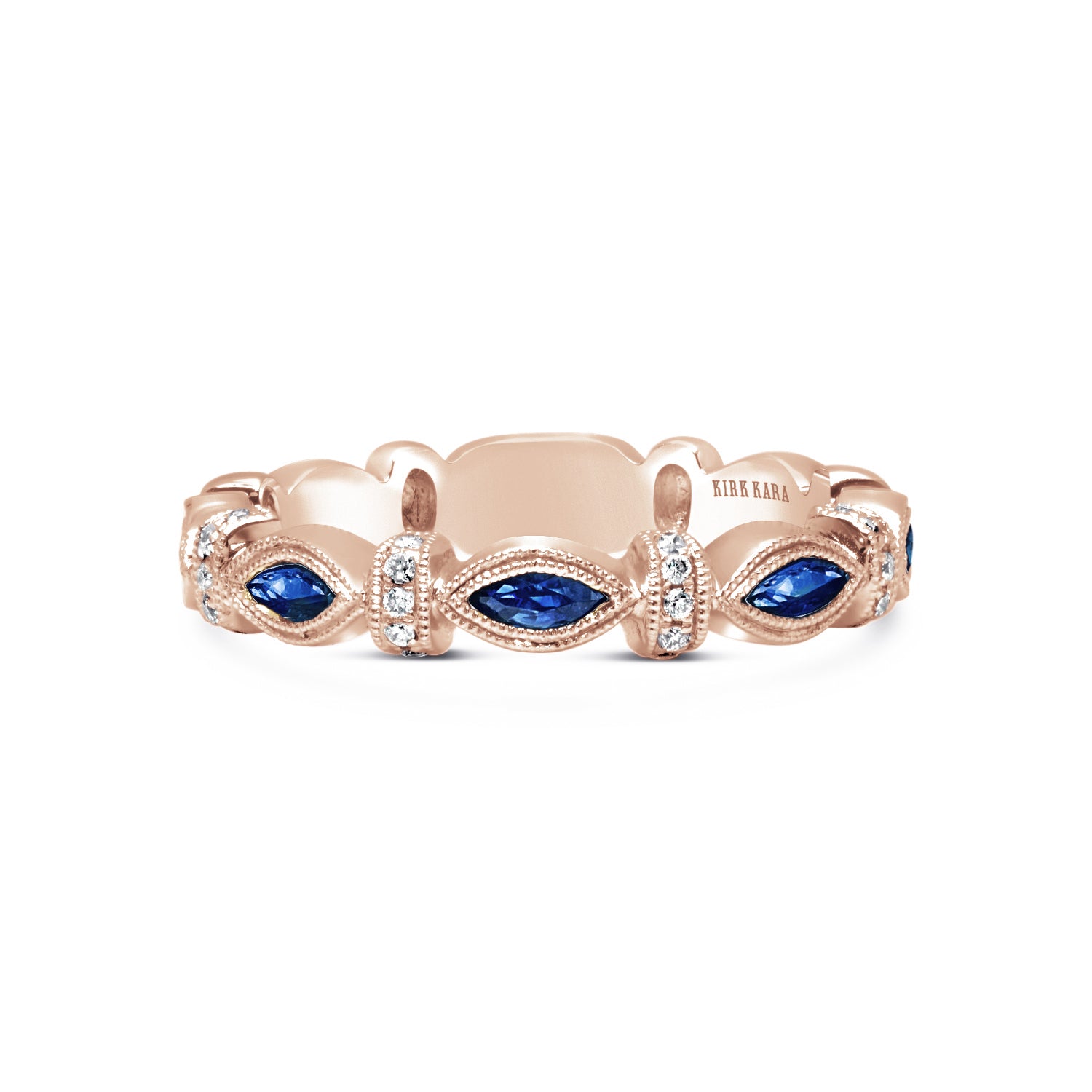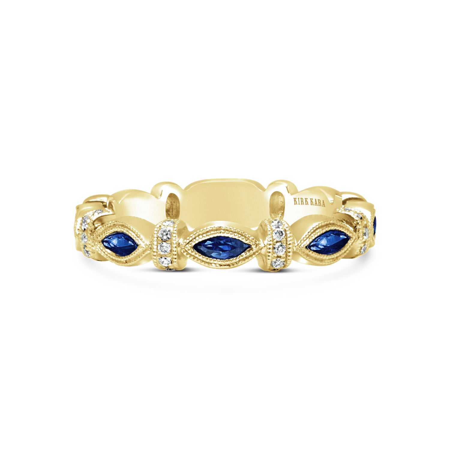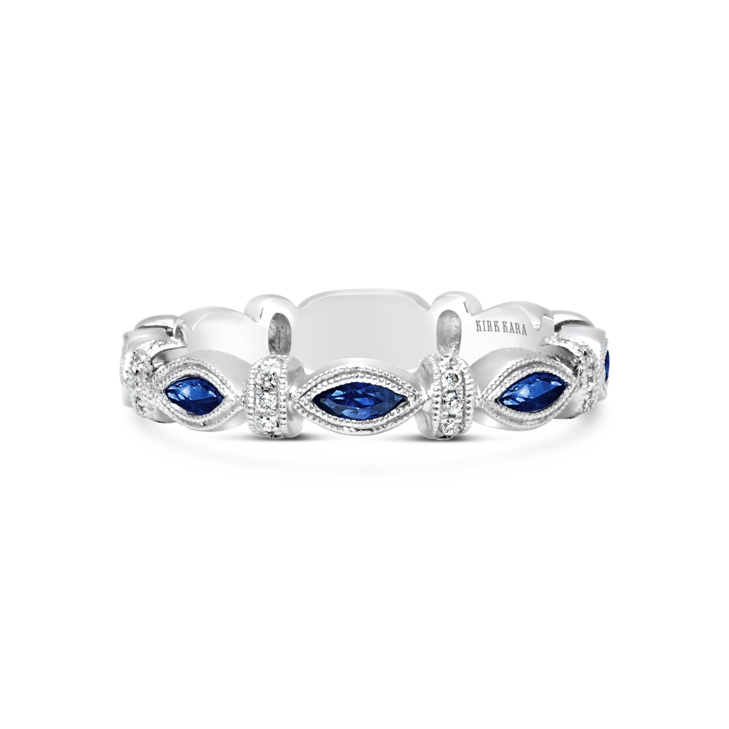 This nature-inspired design with floral details is from the Dahlia collection. It features 1/15 ctw of diamonds and natural blue sapphire marquise. The signature handcrafted details include milgrain edging.